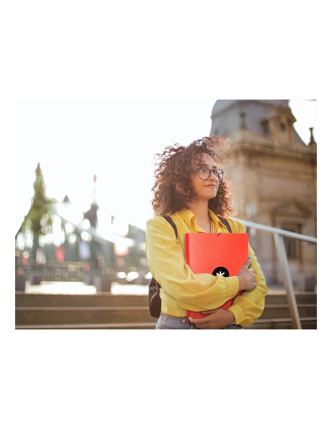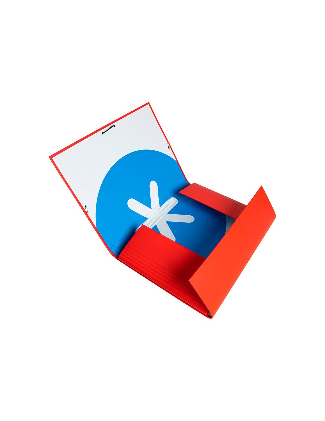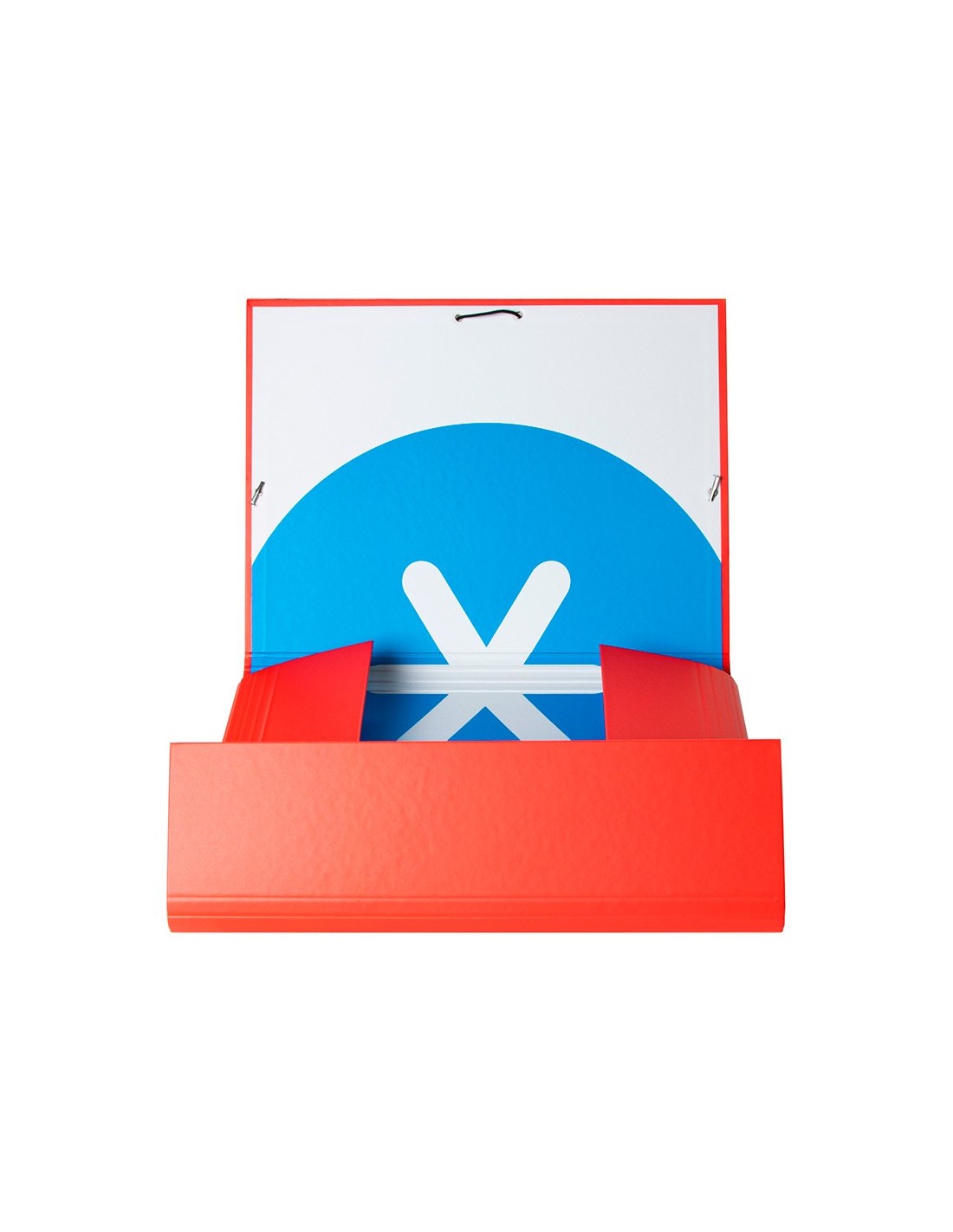 Carpeta de gomas fabricada en cartón forrado de 1,75 mm de espesor. Forrada en papel estucado mate de 135 g/m ²impreso. Plastificada mate con detalles en barniz UVI. Cierre con gomas. Tres solapas. Guarda interior impresa. Formato DIN A4.