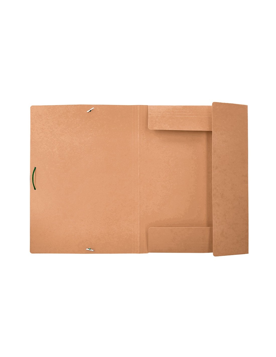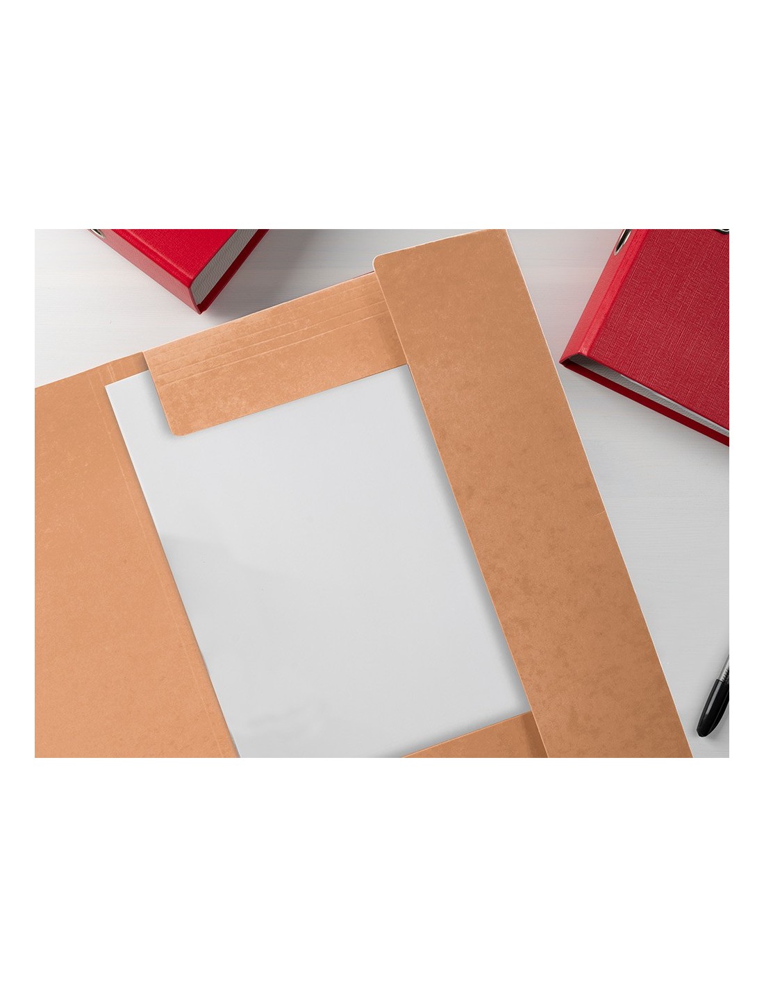 Carpeta de gomas fabricada en cartulina kraft marrón de 400 g/m². 100% reciclada. Con 3 solapas. Formato DIN A4+.