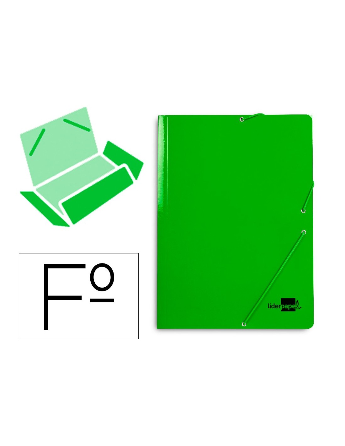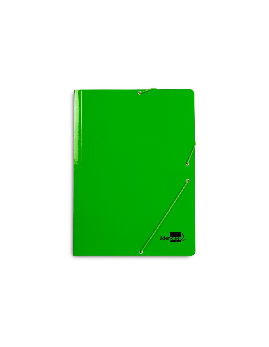 Carpeta de gomas fabricada en cartón plastificado de 600 g/m². Cierre con gomas. Con tres solapas. Tamaño folio.