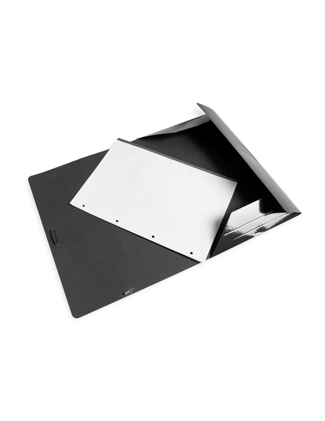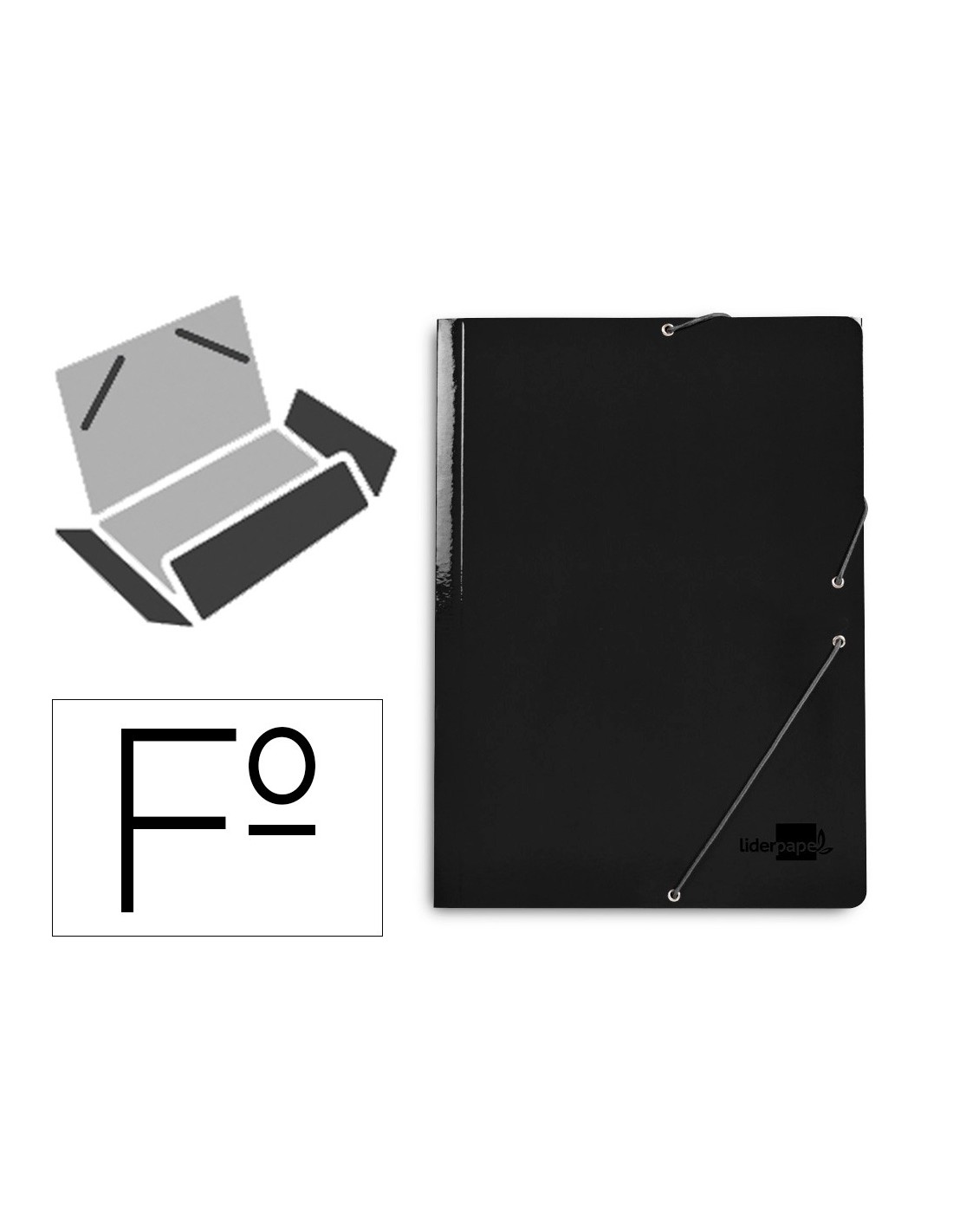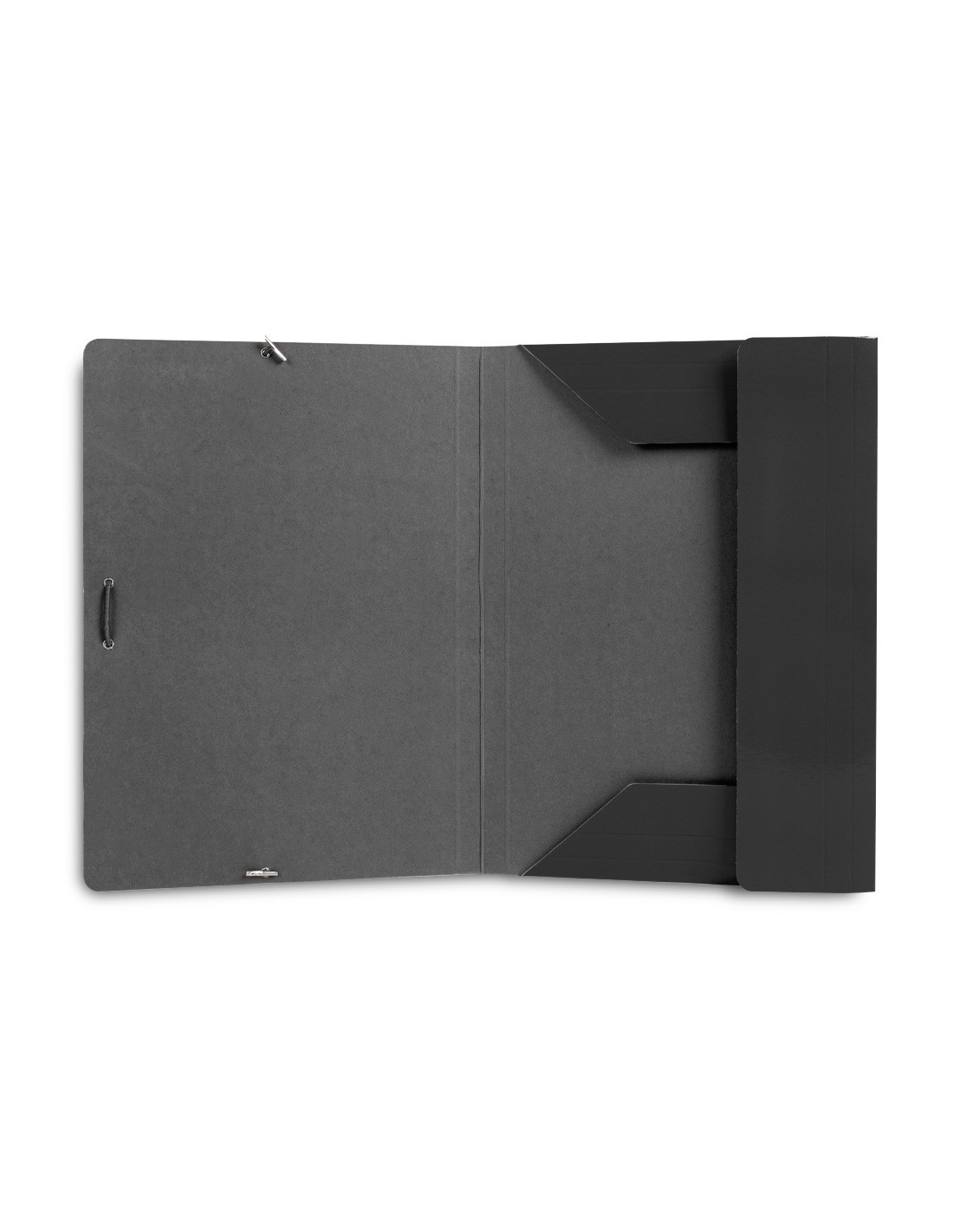 Carpeta de gomas fabricada en cartón plastificado de 600 g/m². Cierre con gomas. Con tres solapas. Tamaño folio.