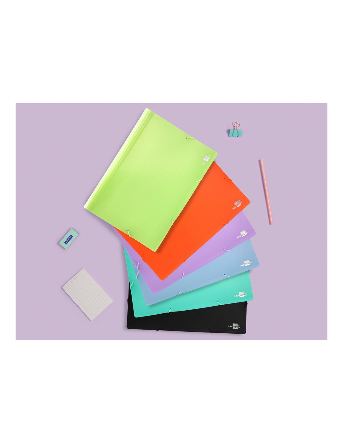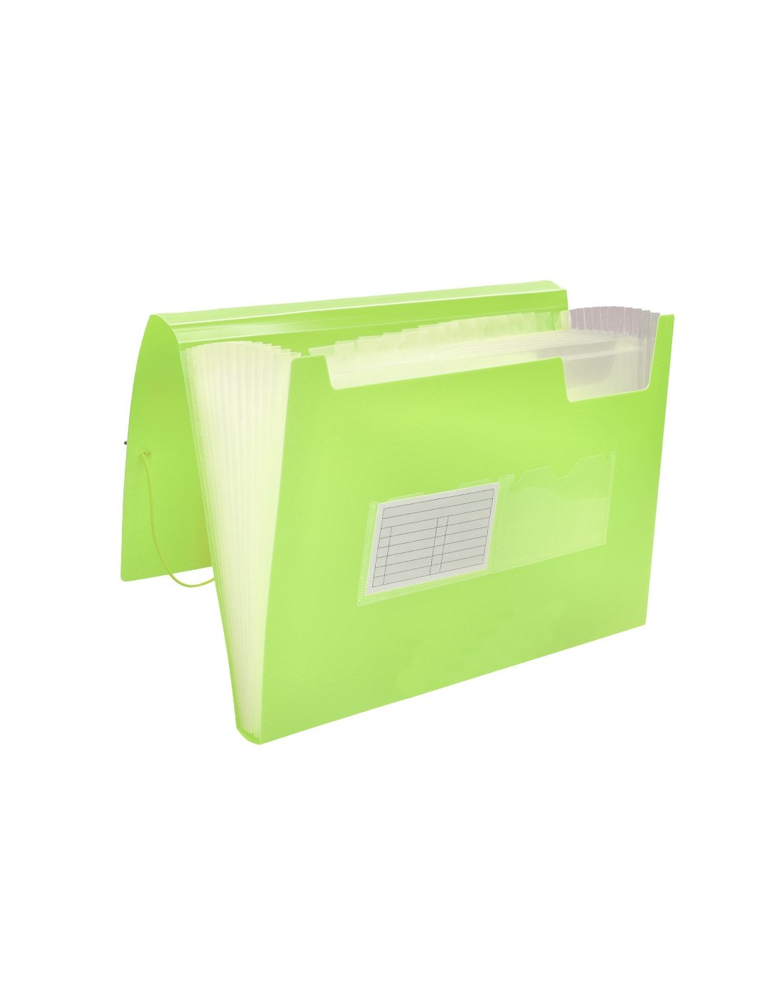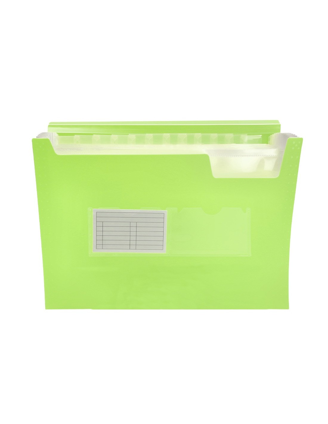 Cierre de gomas. 2 huecos para tarjetas. Etiquetas de meses y A-Z incluidas. 13 departamentos. Formato DIN A4. Fabricada en polipropileno. 700 micras. Departamentos de 150 micras.