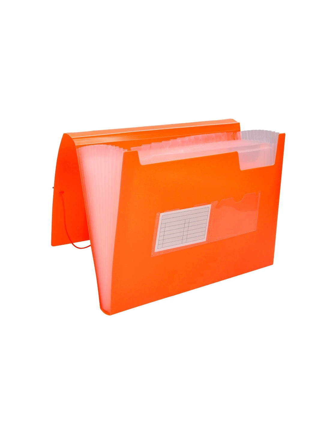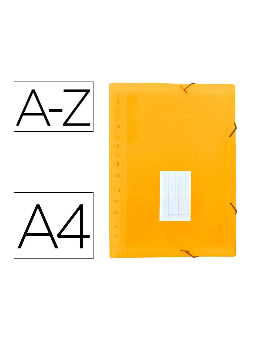Cierre de gomas. 2 huecos para tarjetas. Etiquetas de meses y A-Z incluidas. 13 departamentos. Formato DIN A4. Fabricada en polipropileno. 700 micras. Departamentos de 150 micras.