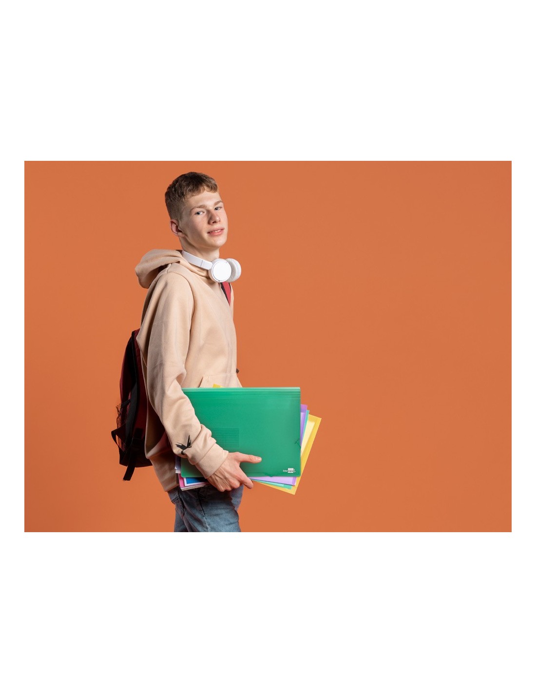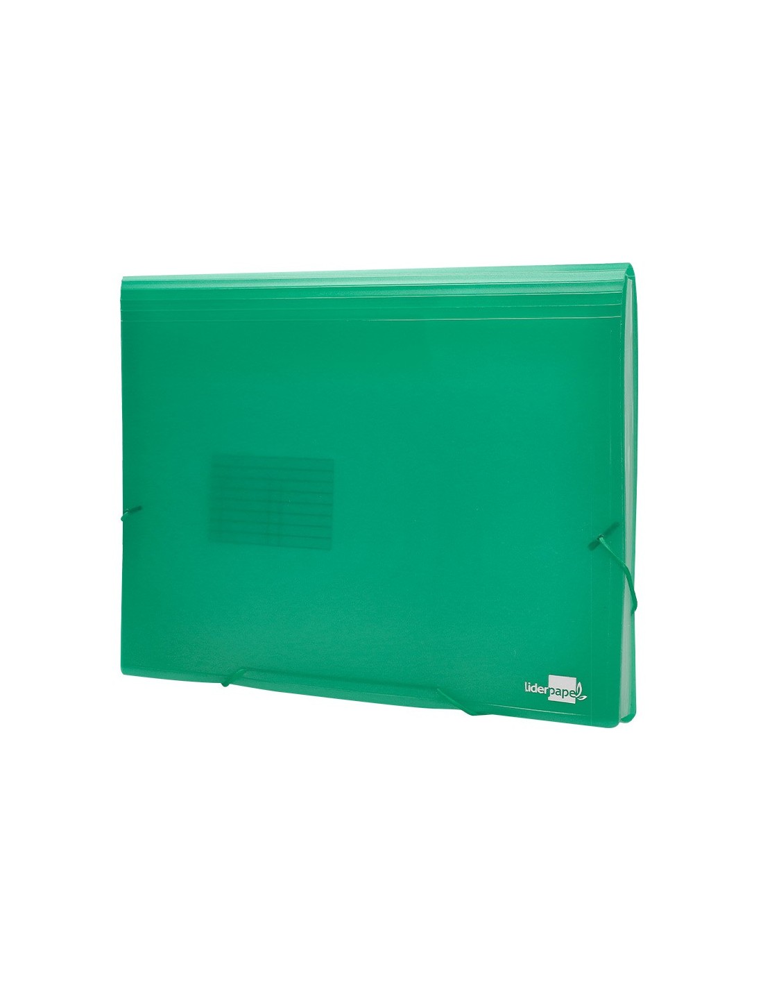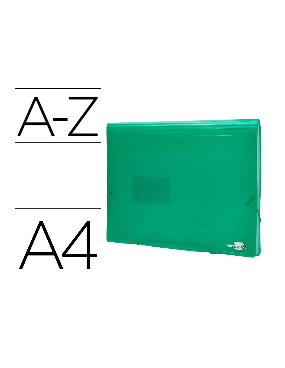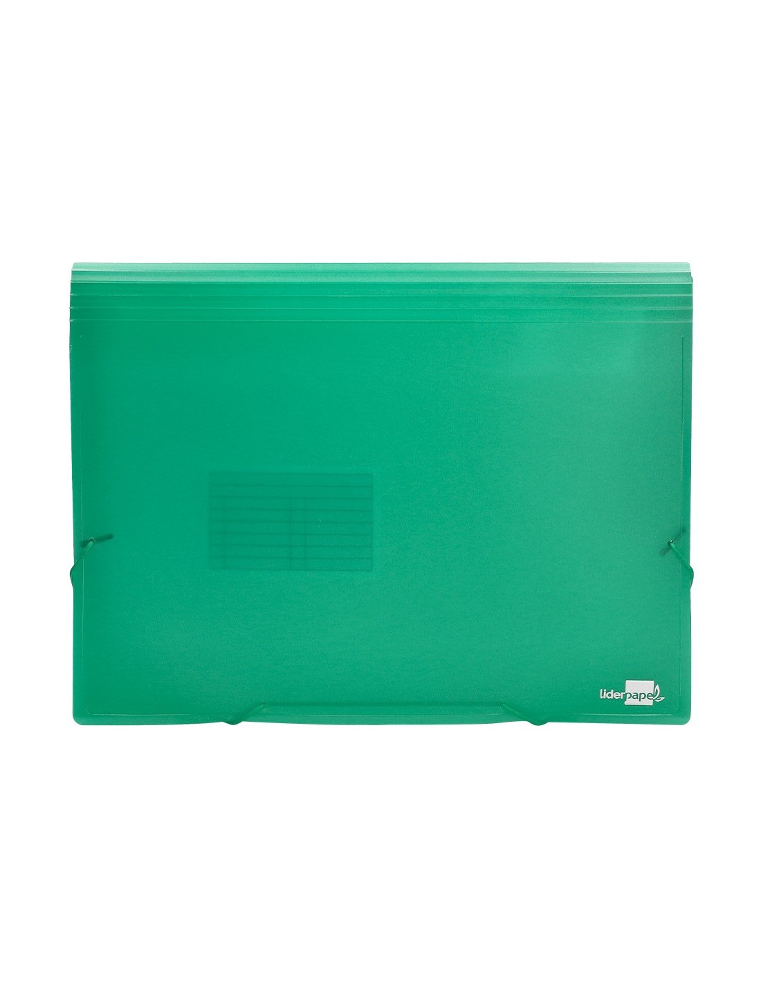 Cierre de gomas. 2 huecos para tarjetas. Etiquetas de meses y A-Z incluidas. 13 departamentos. Formato DIN A4. Fabricada en polipropileno. 700 micras. Departamentos de 150 micras.