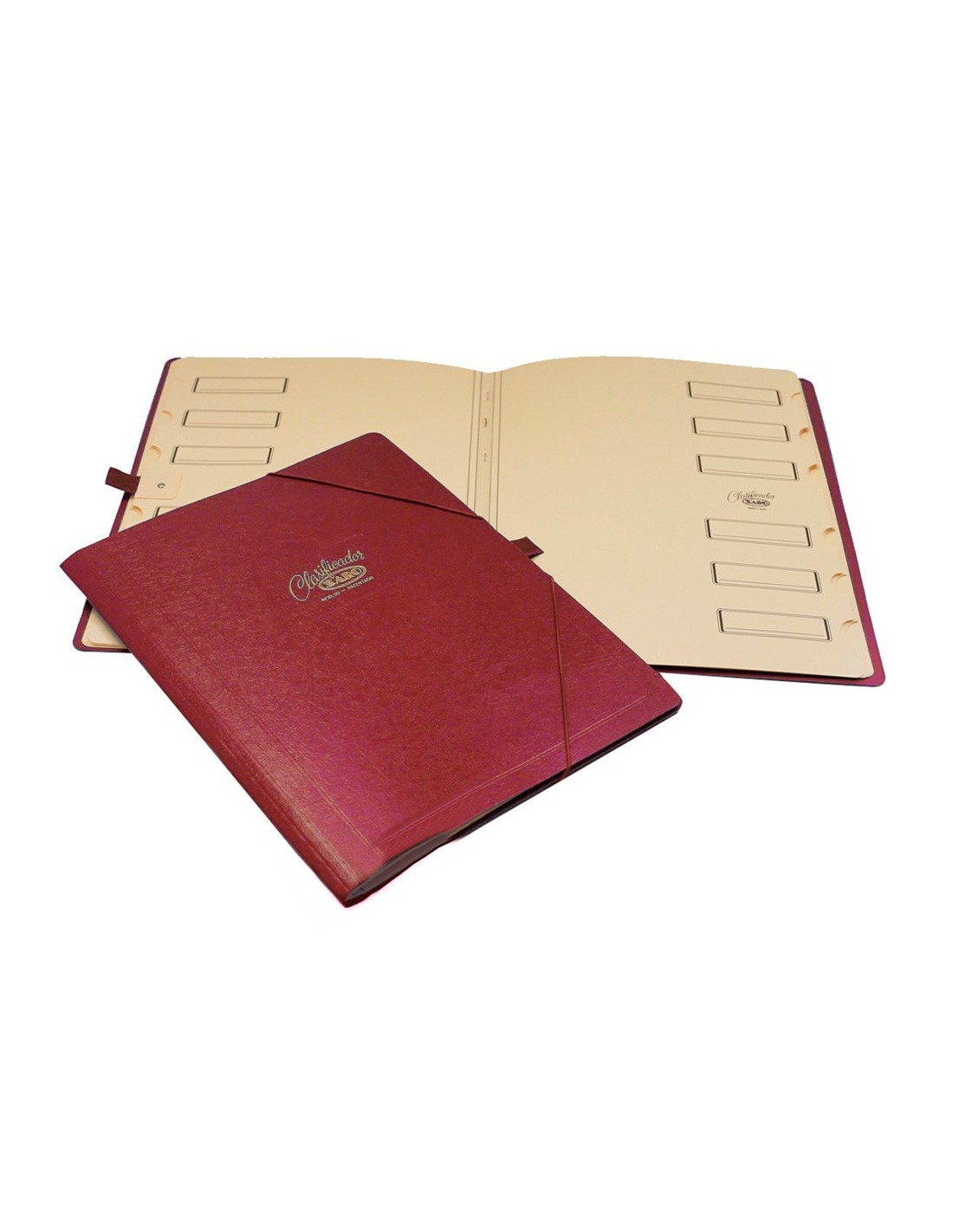 Fabricada con cubiertas en cartón esmaltado del nº 10. Con 12 departamentos. Con cierre de gomas. Tamaño folio prolongado.
