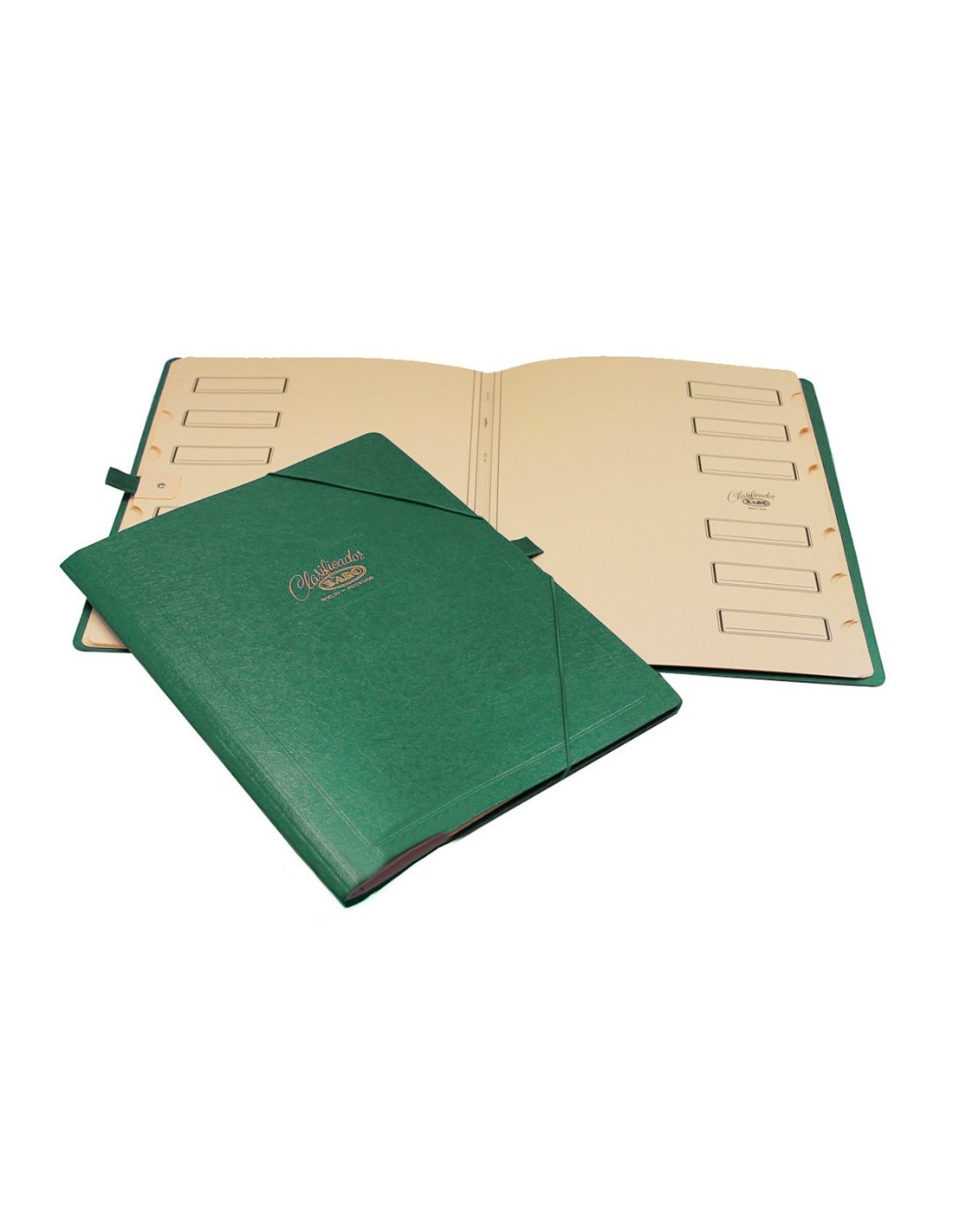 Fabricada con cubiertas en cartón esmaltado del nº 10. Con 12 departamentos. Con cierre de gomas. Tamaño folio prolongado.