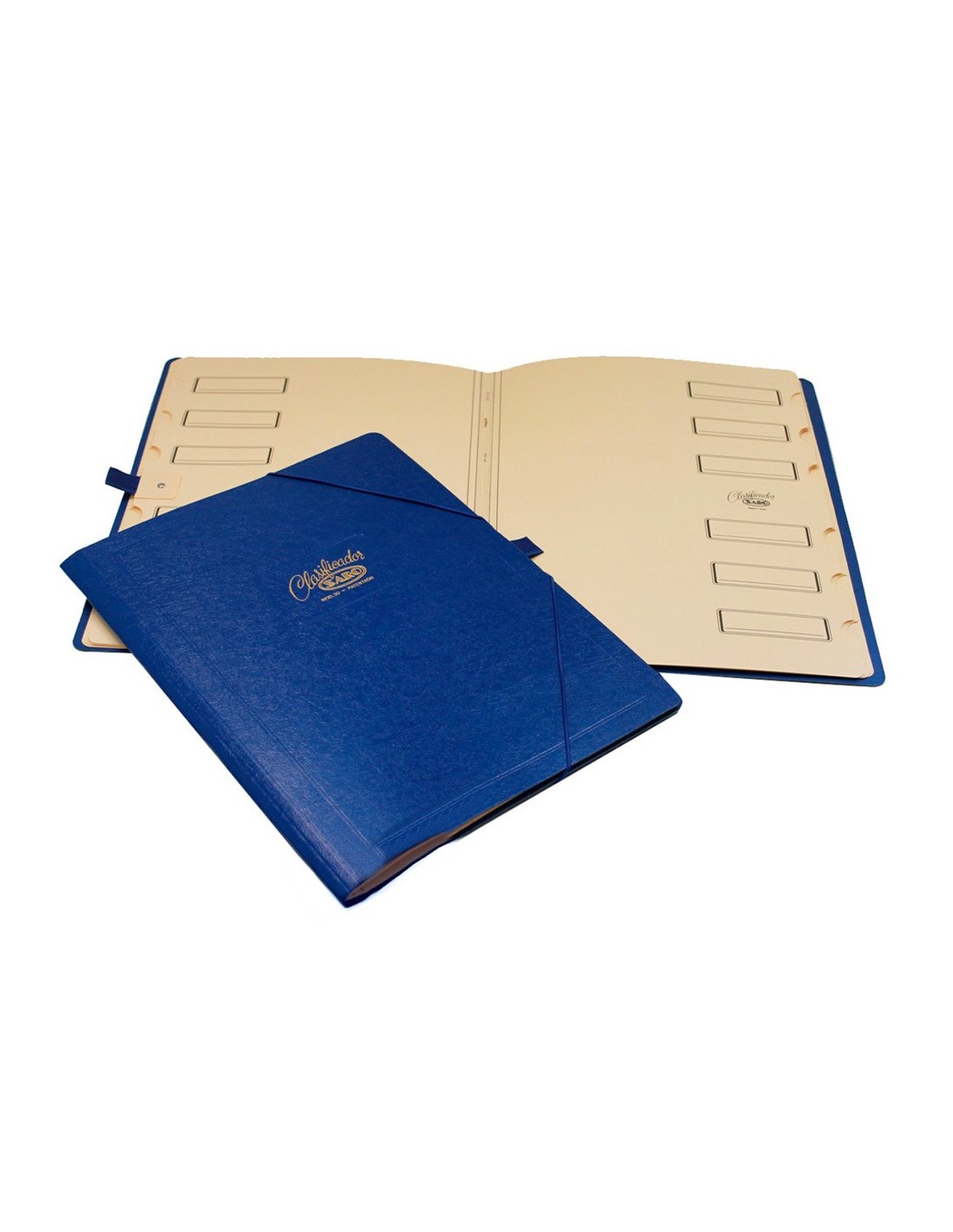 Fabricada con cubiertas en cartón esmaltado del nº 10. Con 12 departamentos. Con cierre de gomas. Tamaño folio prolongado.