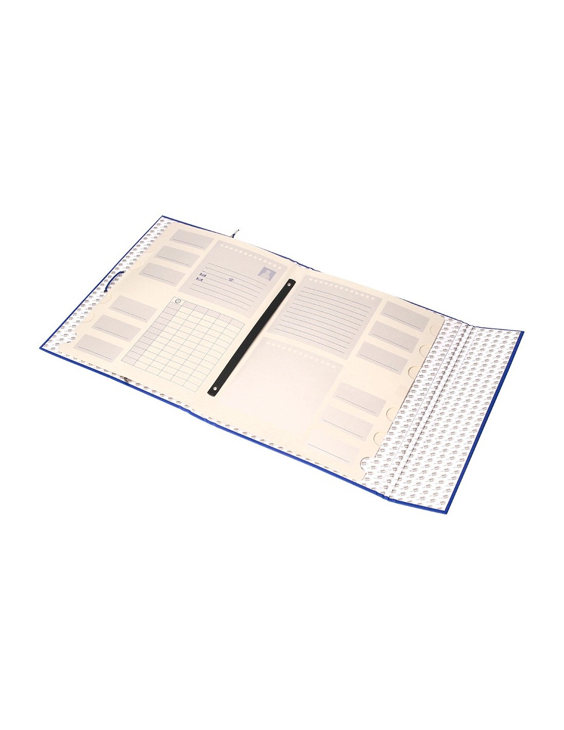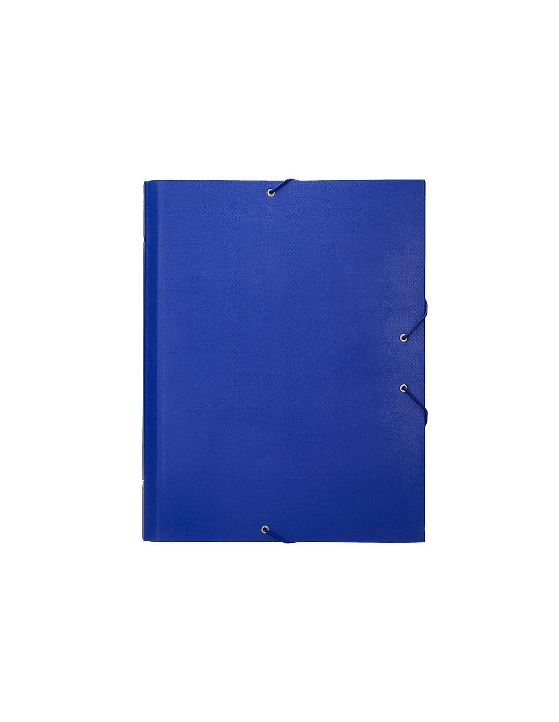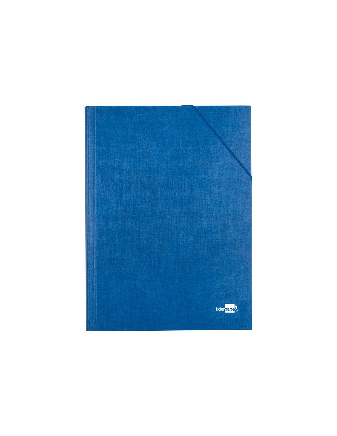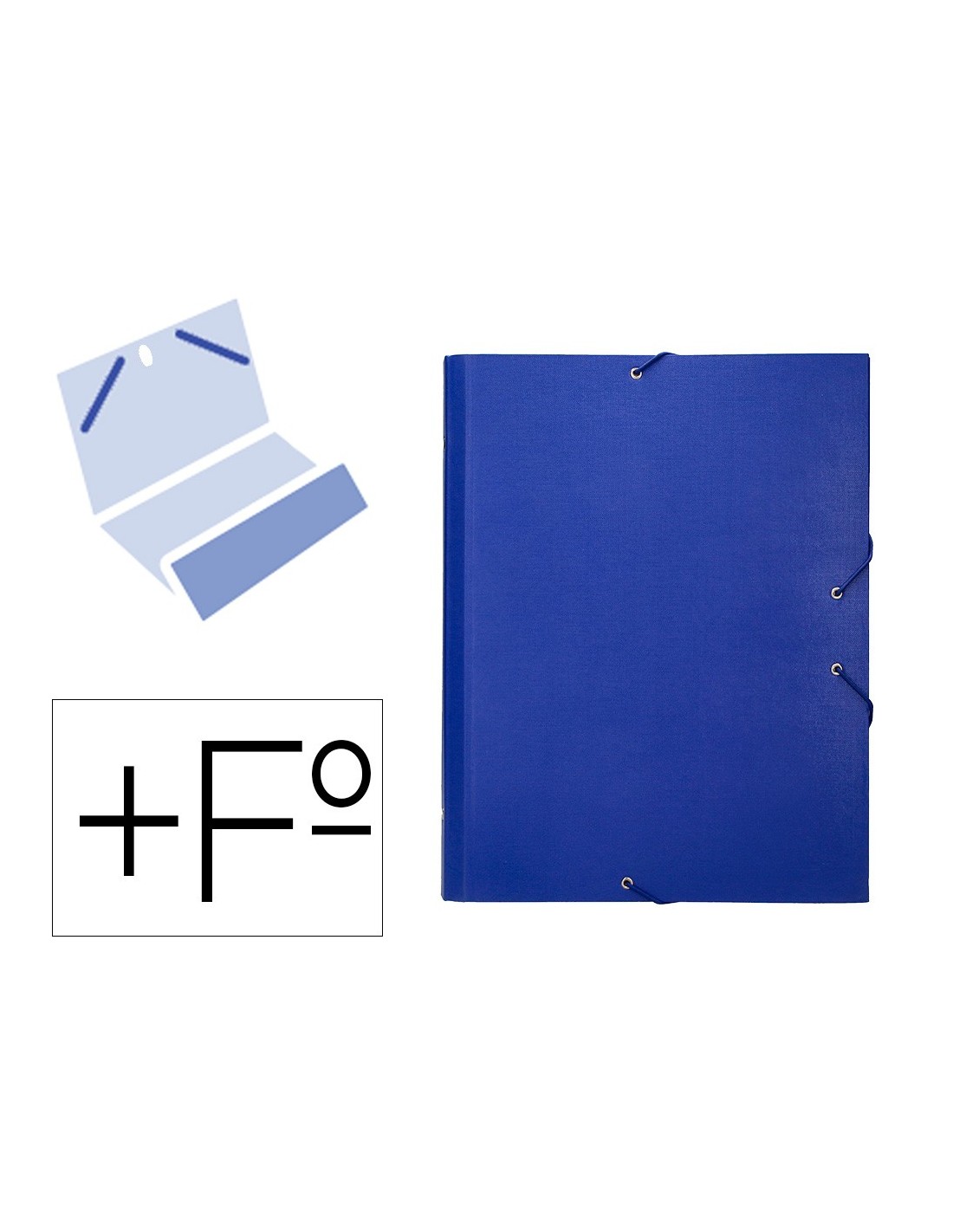 Carpeta fabricada en cartón entrecolado de 1,75 mm de grosor, forrado con papel de encuadernación plastificado, gofrado tela en PVC. Guarda interior impresa. Con solapa. 12 departamentos. Cierre con gomas. Tamaño folio prolongado.