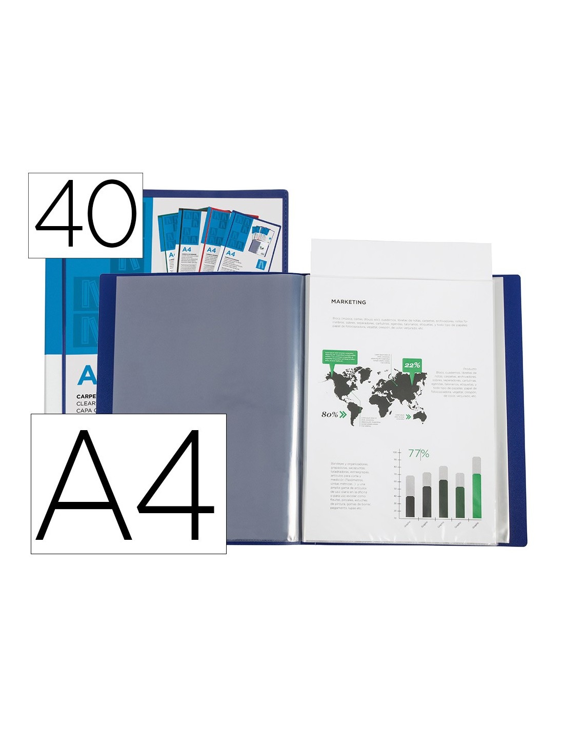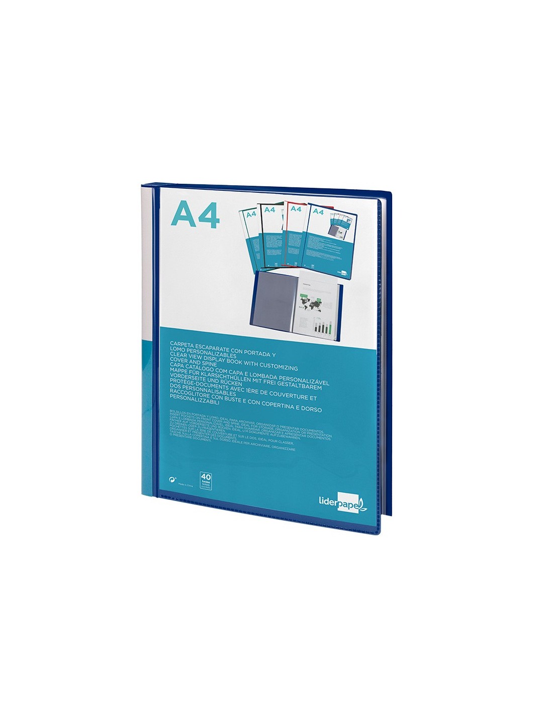 CARPETA PERSONALIZA 40 FUNDAS PP. A4 AZ. TRANS.PORTADA LOMO