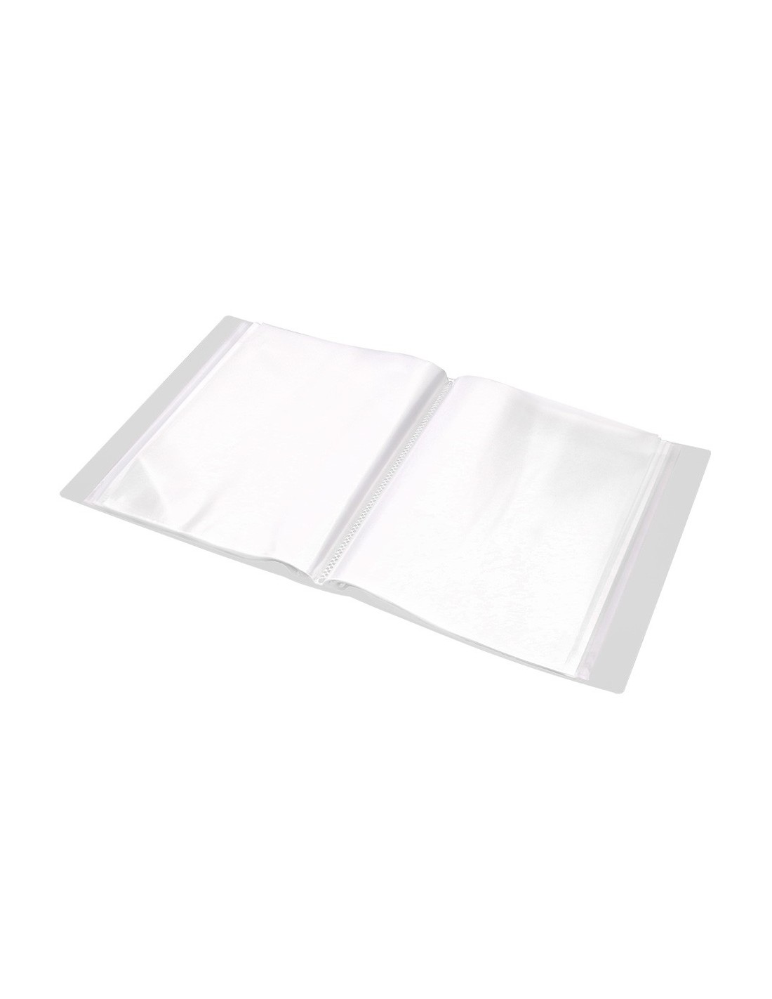 Fabricada en polipropileno. Con portada y lomo de 60 mm personalizable. Formato DIN A4. Con 100 fundas de apertura superior. Incluye cajetín. Portada de 1000 micras. Fundas de 40 micras.