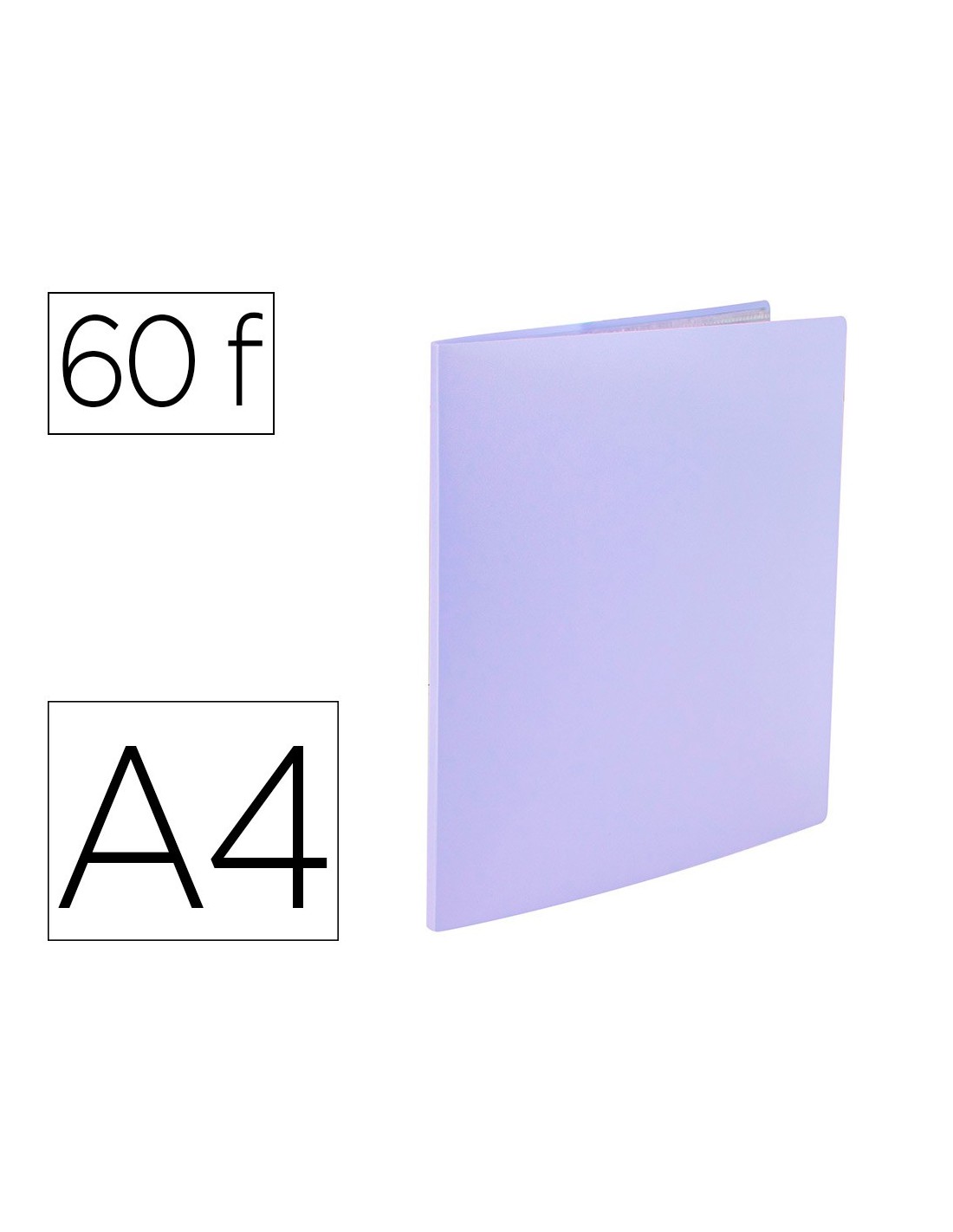 Fabricada en polipropileno. Portada flexible. Formato DIN A4. Colores opacos. Disponibles en 10, 20, 30, 40, 60 y 80 fundas. Portada 400 micras. Fundas 40 micras.