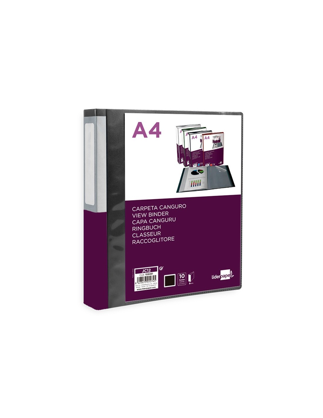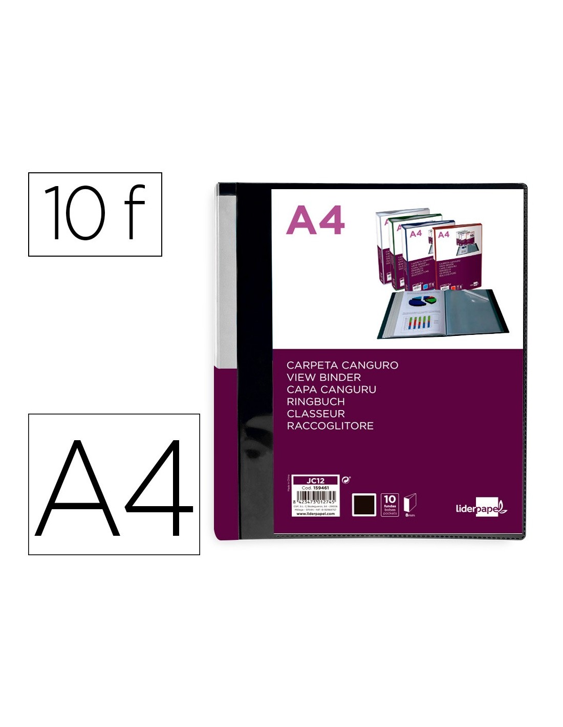 CARPETA LIDERPAPEL 10 FUNDAS PP A4 NG.OPACO PORTADA LOMO PERS.