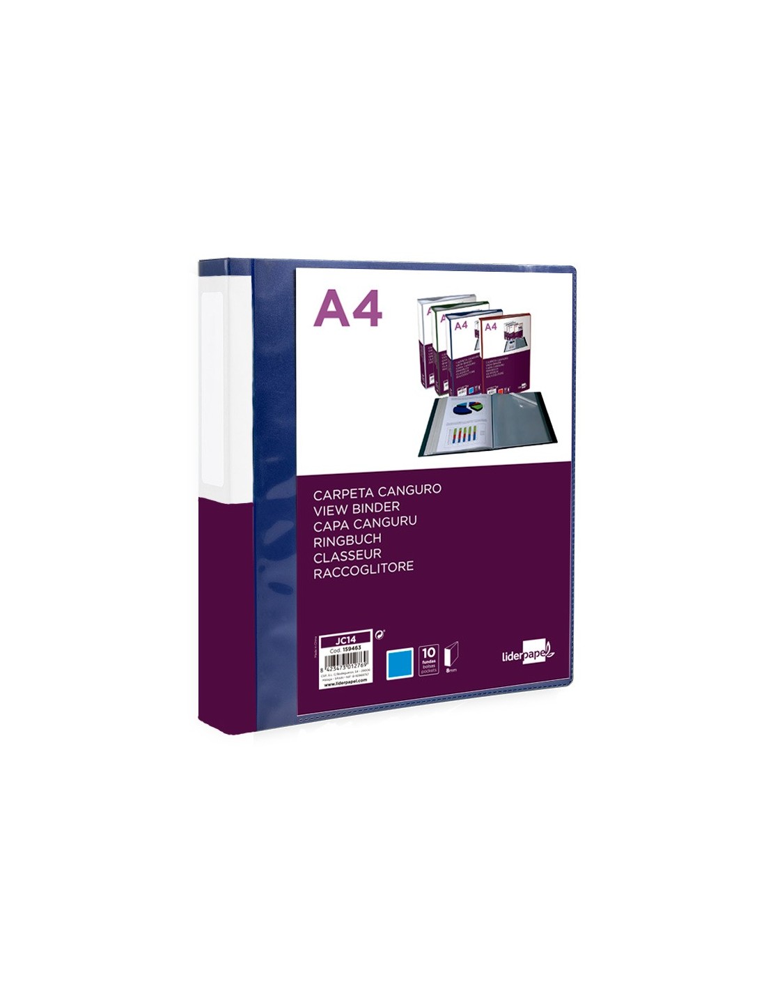 CARPETA LIDERPAPEL 10 FUNDAS PP A4 AZ. TRANS.PORTADA LOMO PERS.