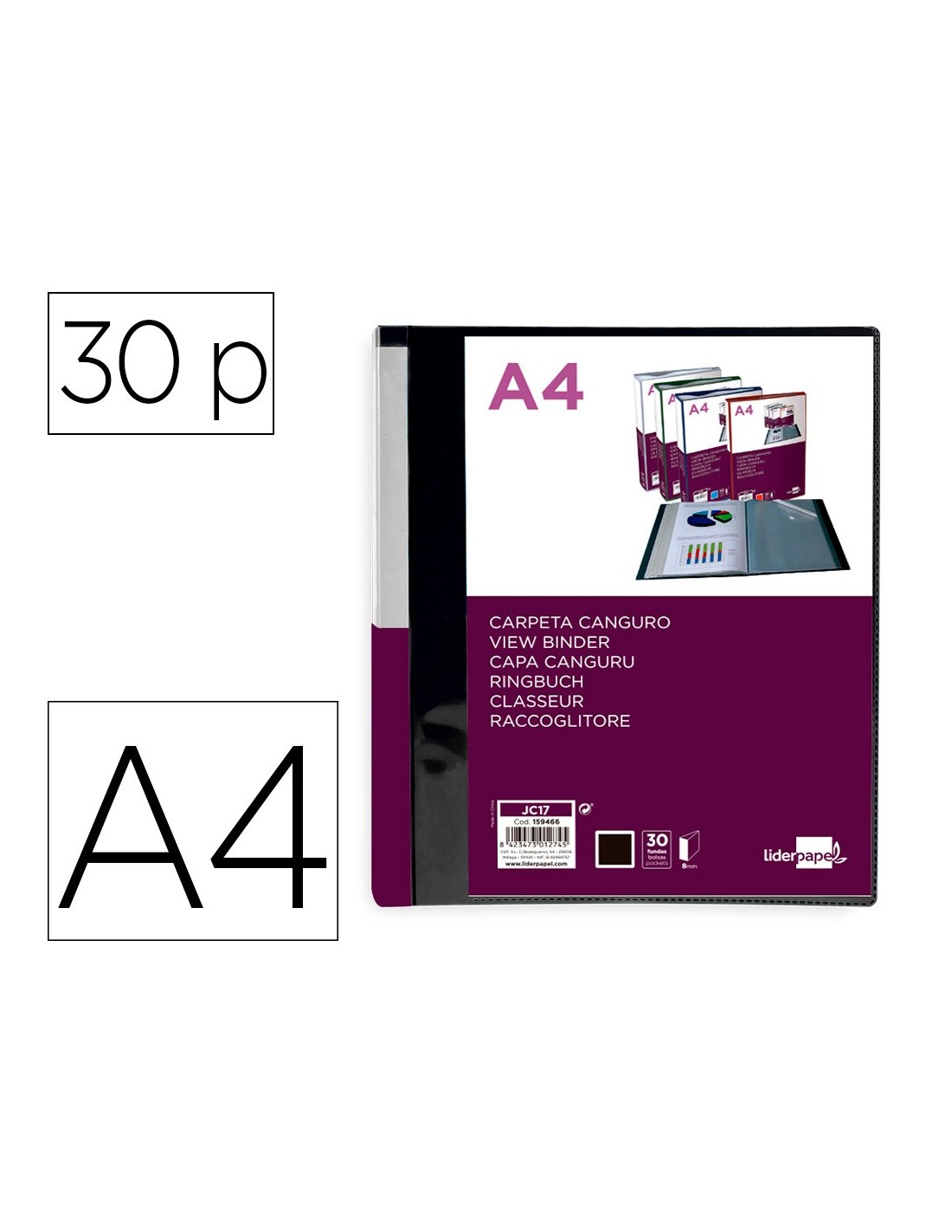 CARPETA LIDERPAPEL 30 FUNDAS PP A4 NG.OPACO PORTADA LOMO PERS.