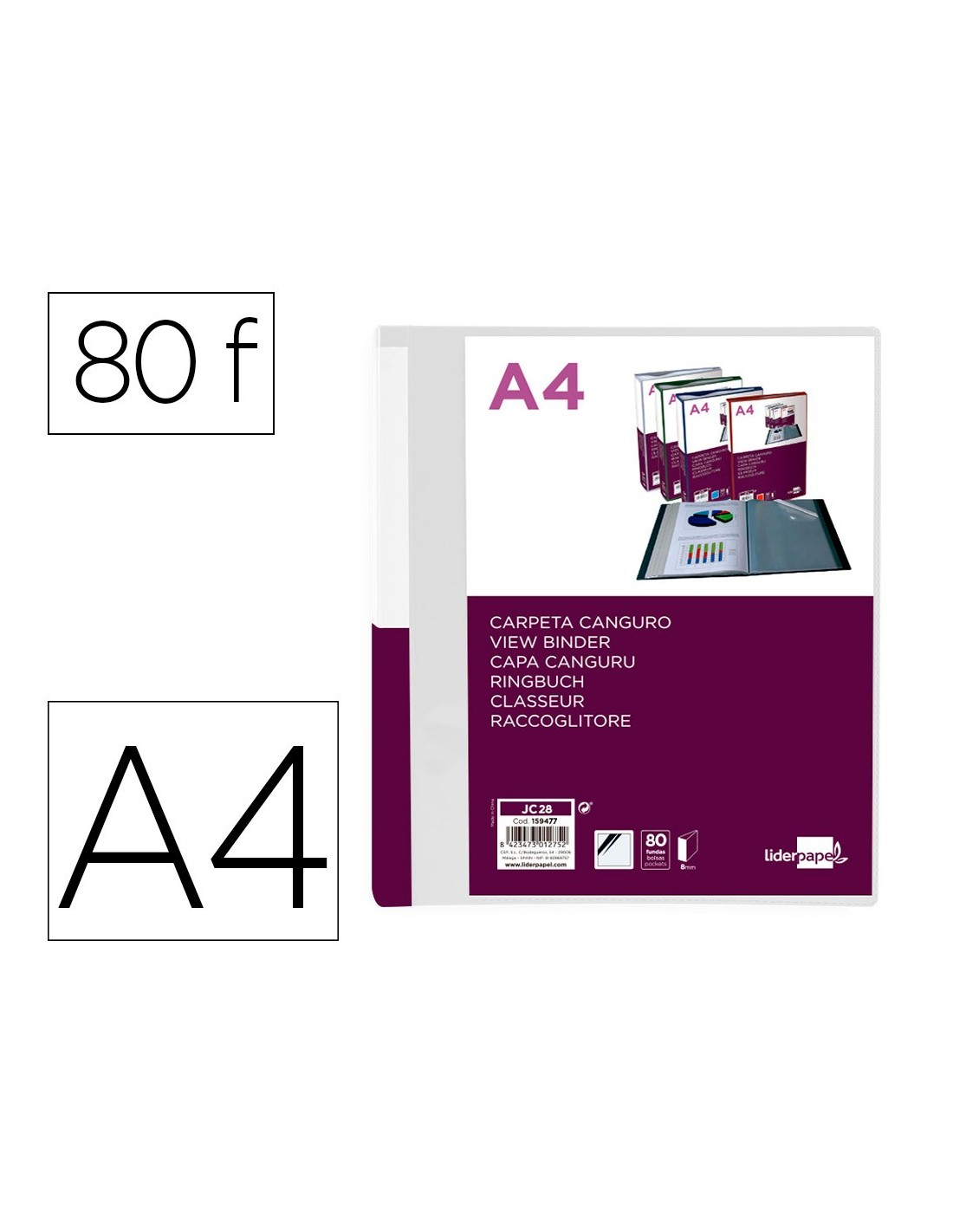 CARPETA LIDERPAPEL 80 FUNDAS PP A4 TPTE.PORTADA LOMO PERSONAL.