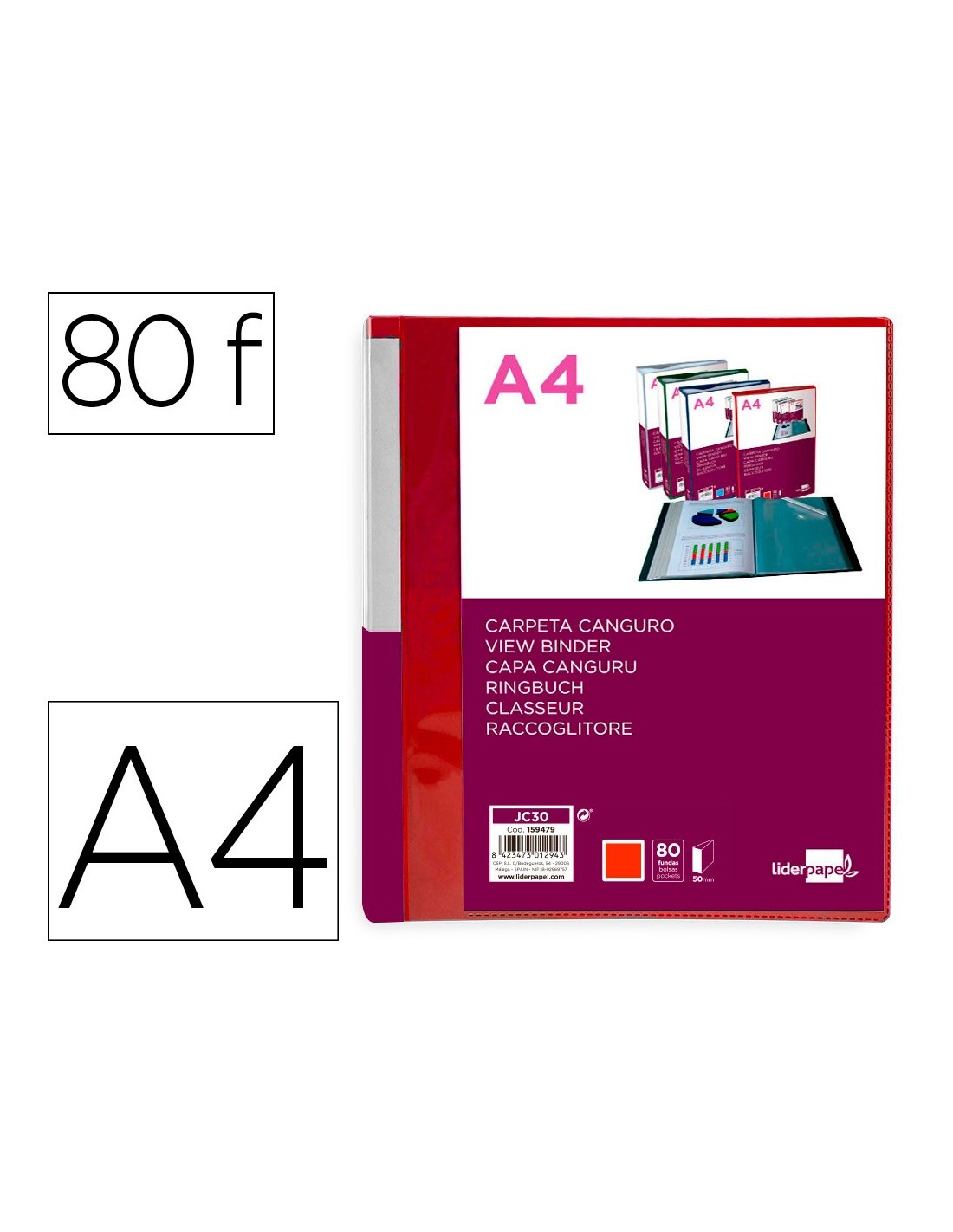 CARPETA LIDERPAPEL 80 FUNDAS PP A4 RJ. TRANS.PORTADA LOMO PERS.