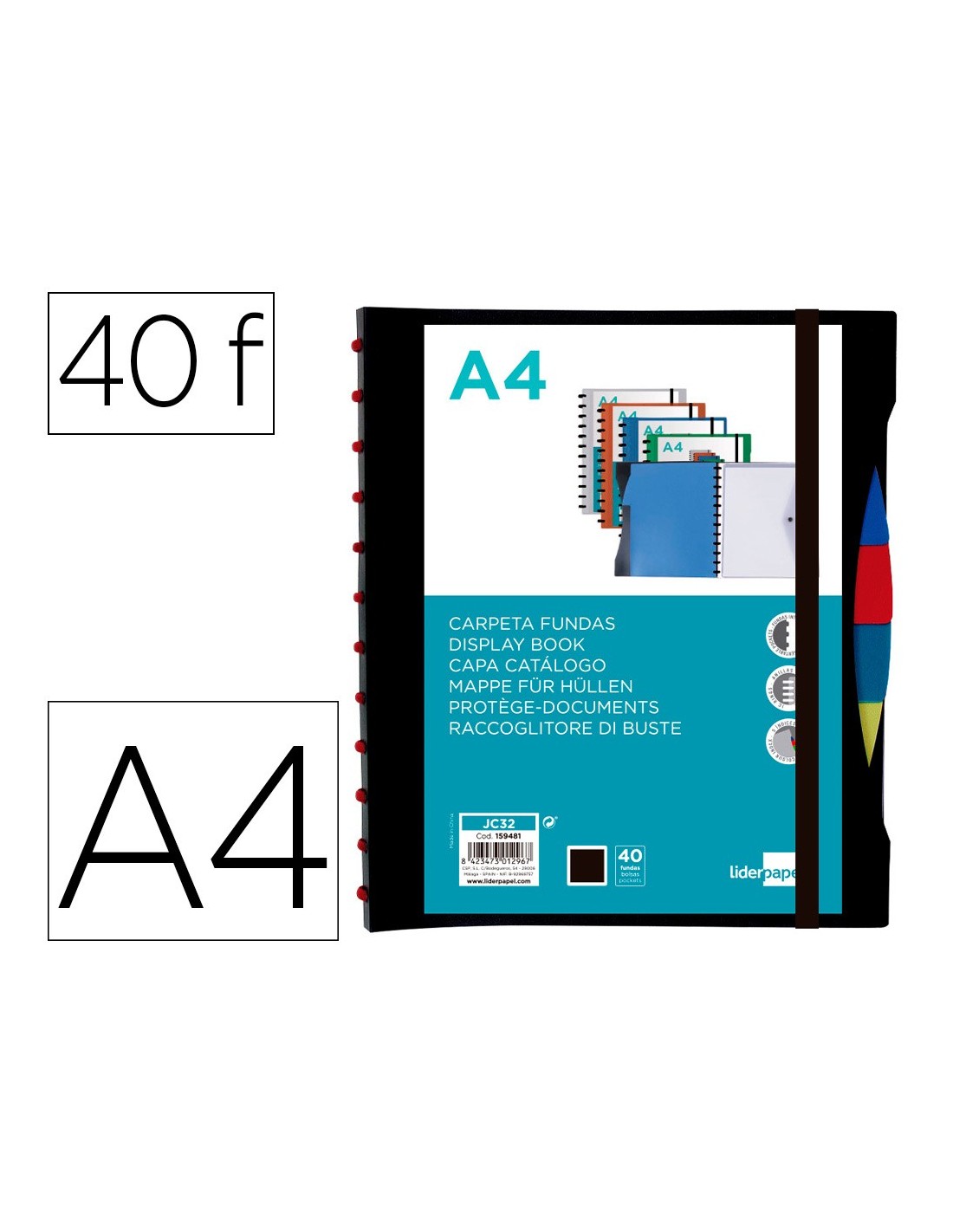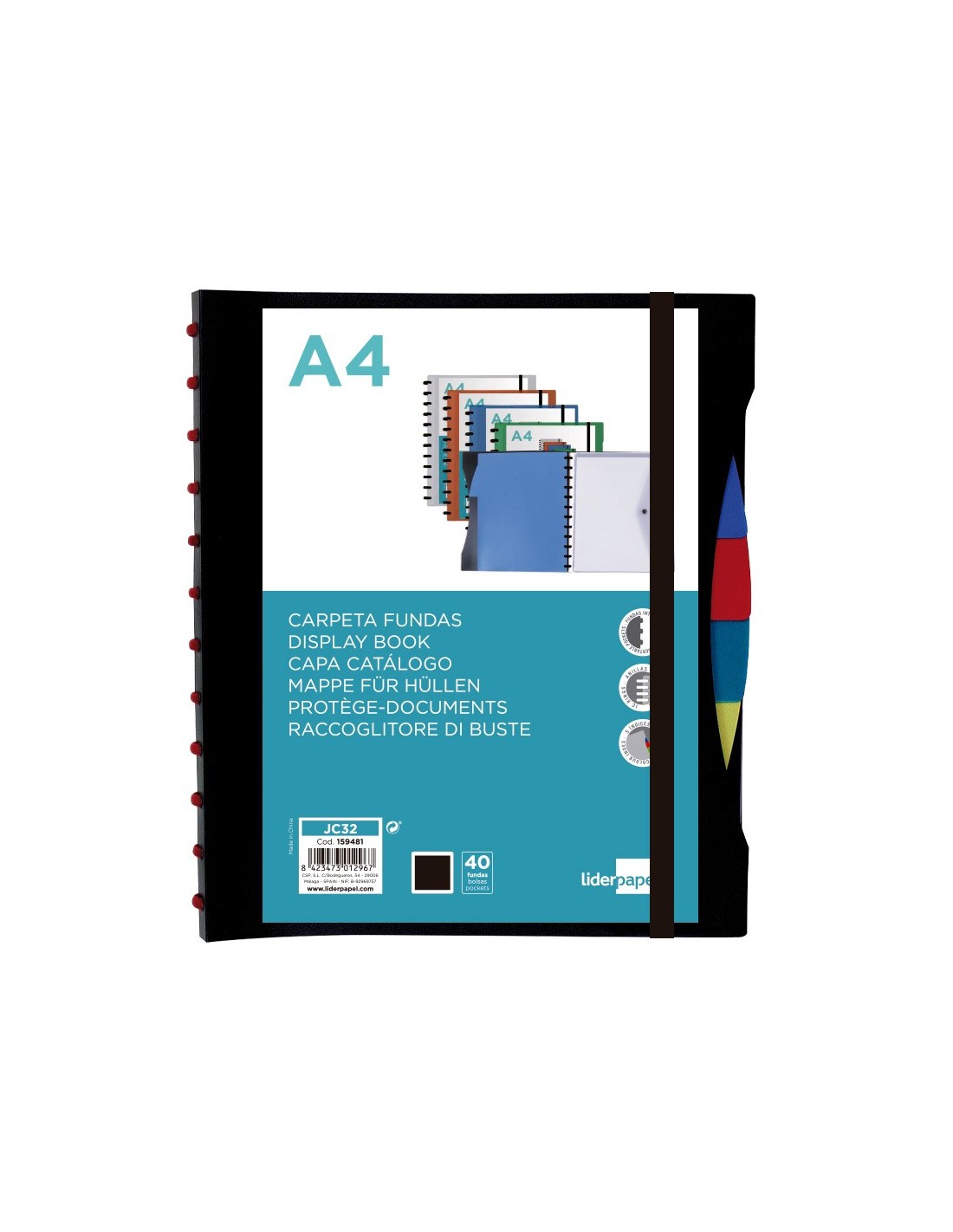 CARPETA LIDERPAPEL A4 40 FUNDAS INTERC.5 SEP Y GOMILLA LOMO PERSO.NG.
