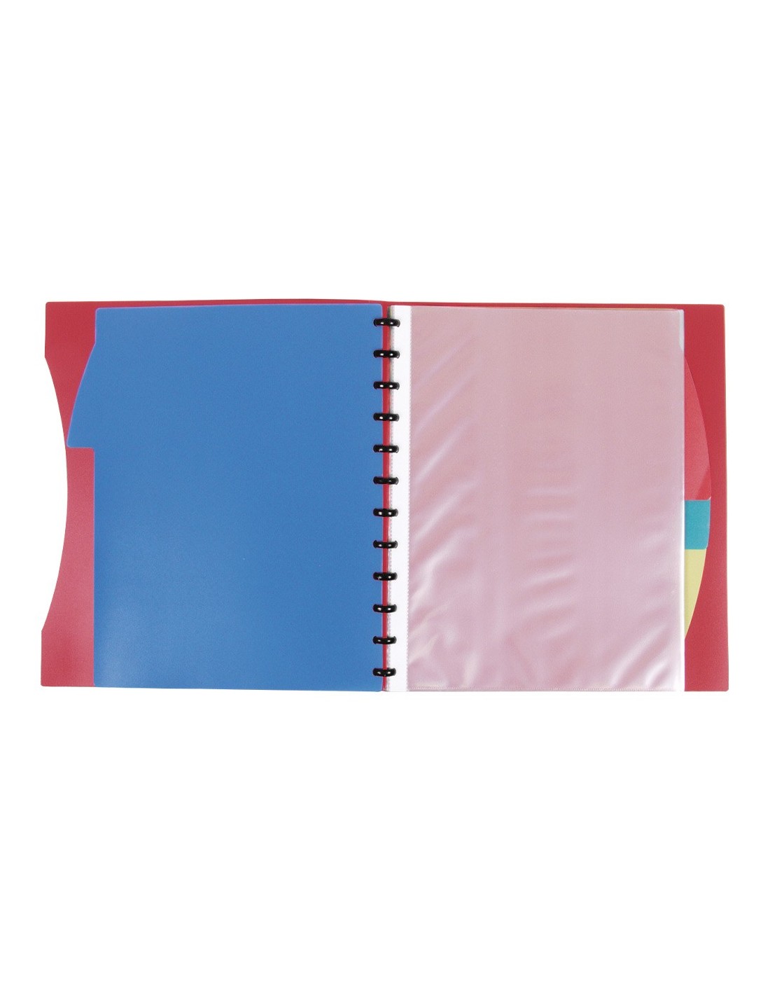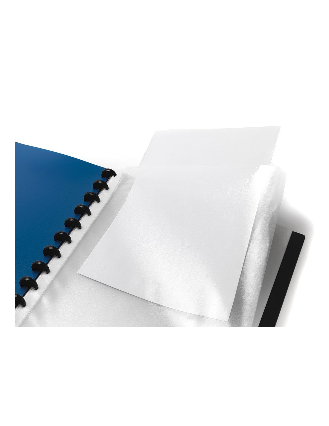 Carpeta con 40 fundas de 75 micras intercambiables, fabricada en polipropileno, con sobre interior para guardar documentos y 5 separadores. Anillas en plástico. Portada personalizable de 600 micras. Formato DIN A4.