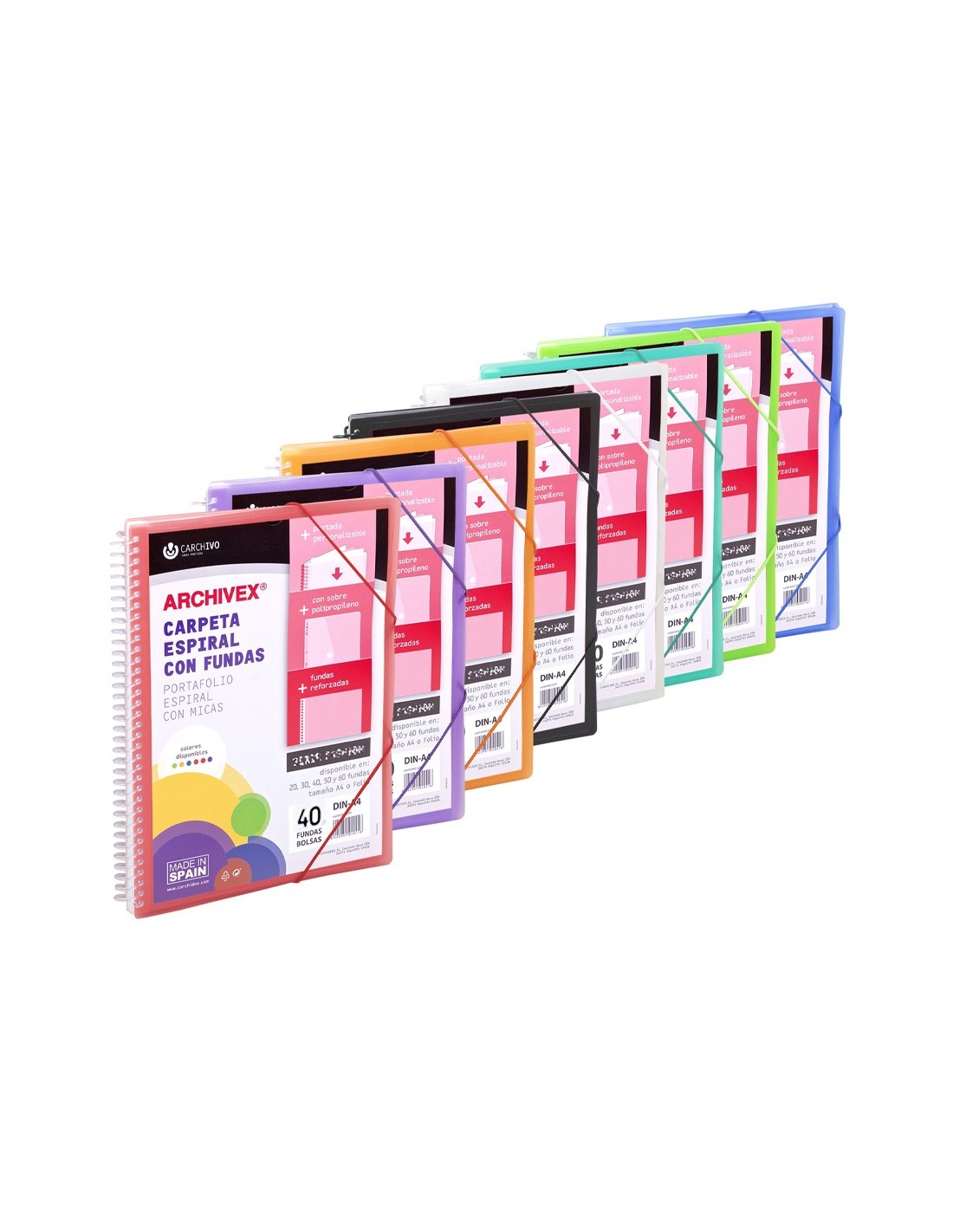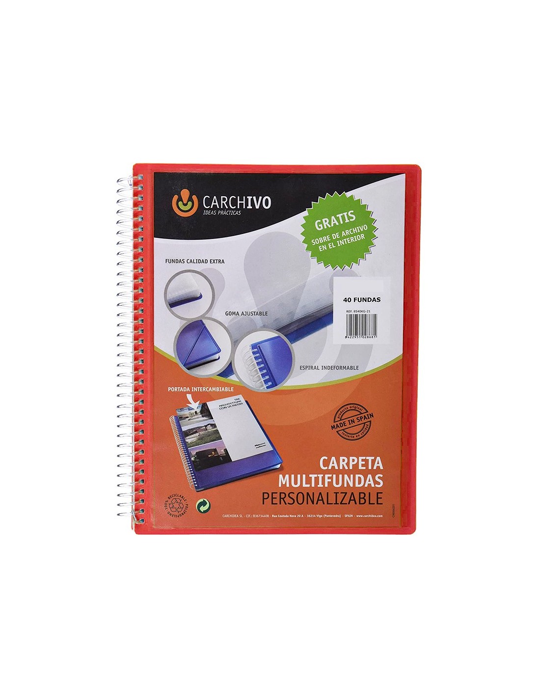Carpeta personalizable con 40 fundas. Fabricada en polipropileno. Formato DIN A4.