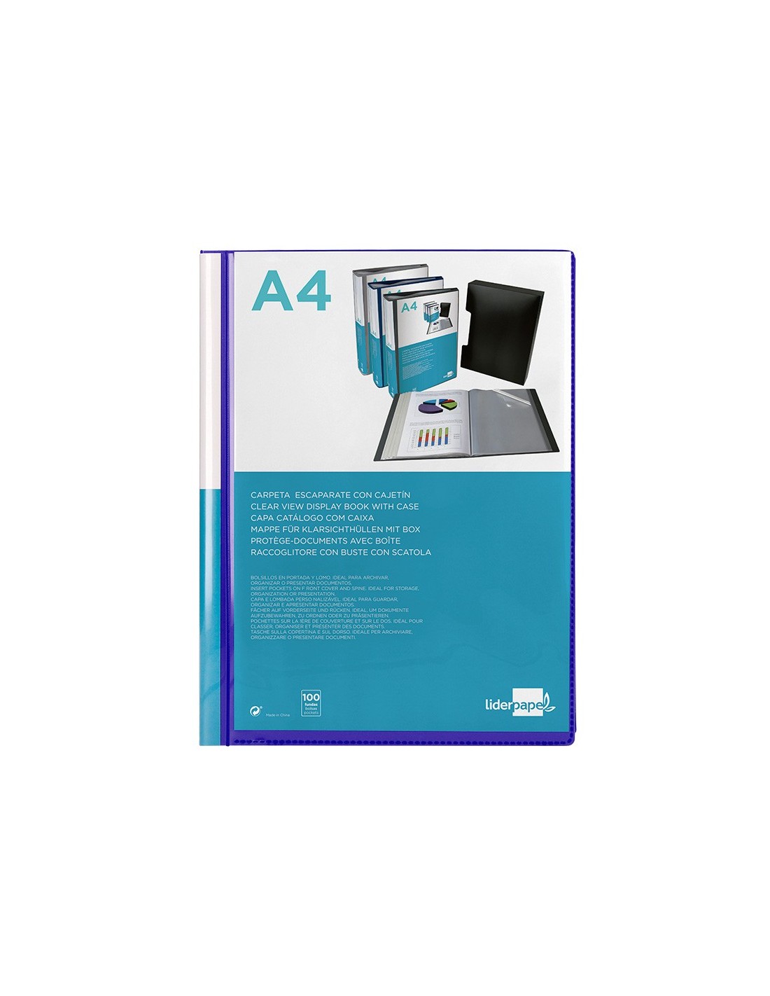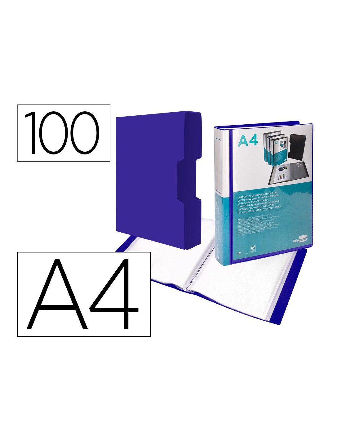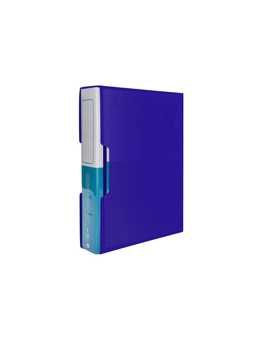 Fabricada en polipropileno. Con portada y lomo de 60 mm personalizable. Formato Din A4. Con 100 fundas de apertura superior. Incluye cajetín. Portada de 1400 micras. Fundas de 40 micras.