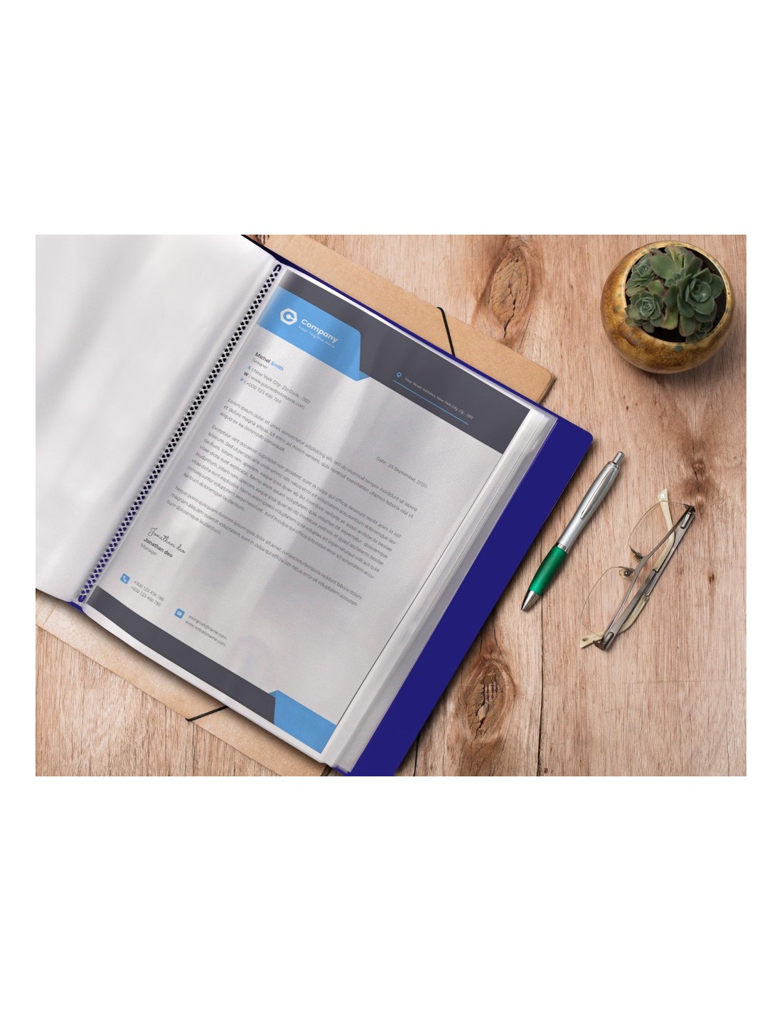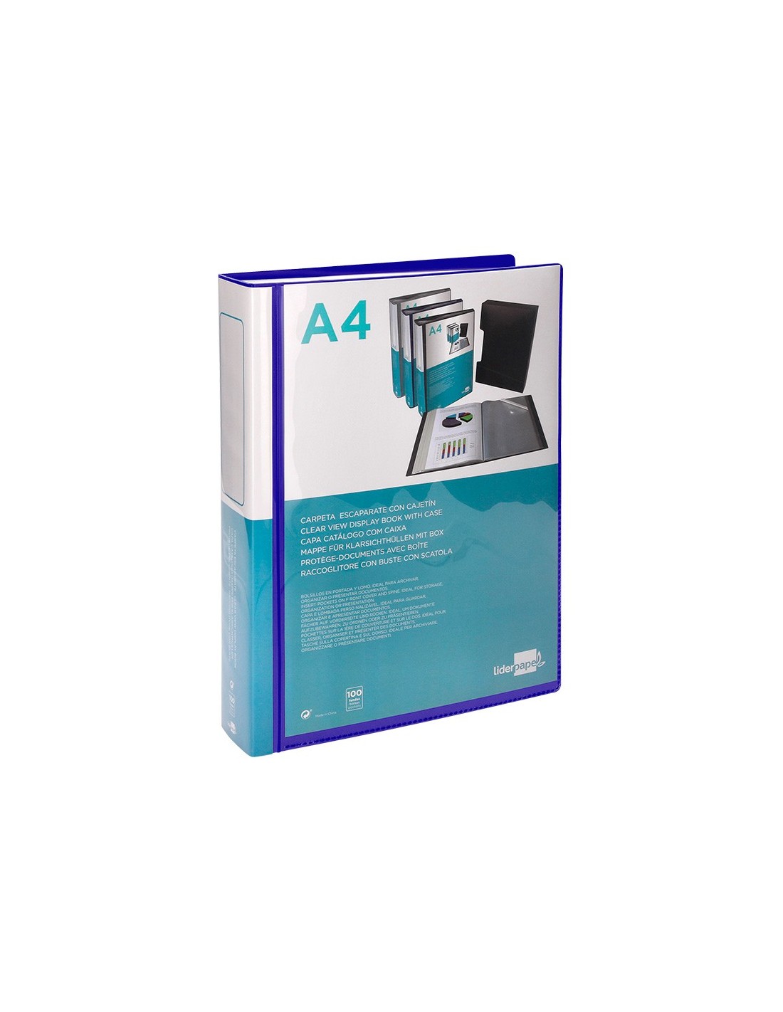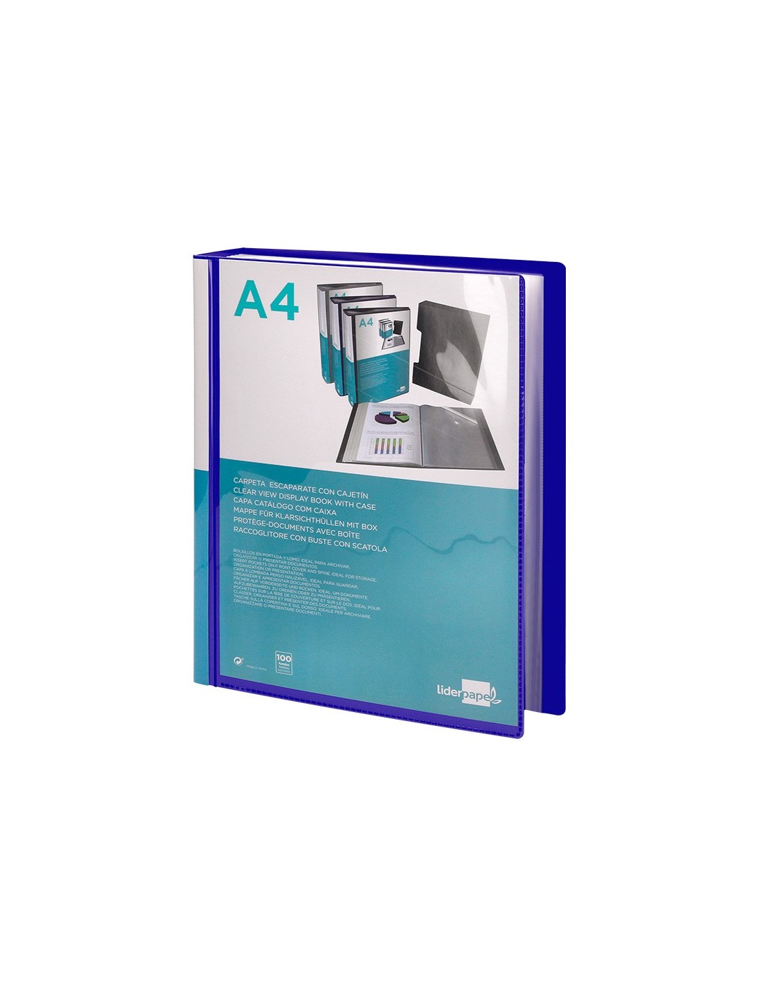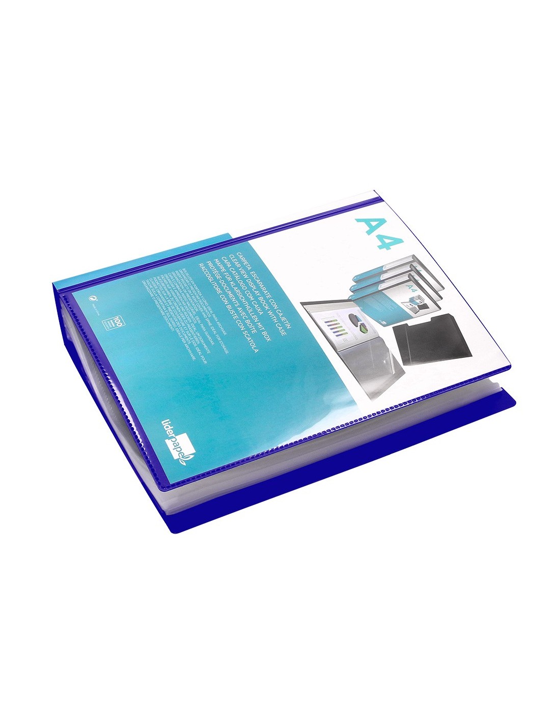 Fabricada en polipropileno. Con portada y lomo de 60 mm personalizable. Formato Din A4. Con 100 fundas de apertura superior. Incluye cajetín. Portada de 1400 micras. Fundas de 40 micras.