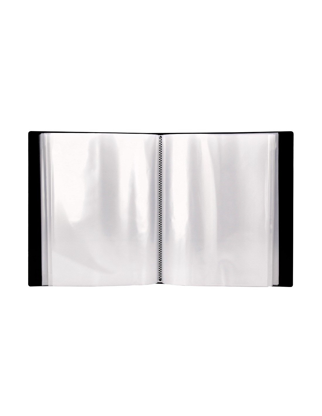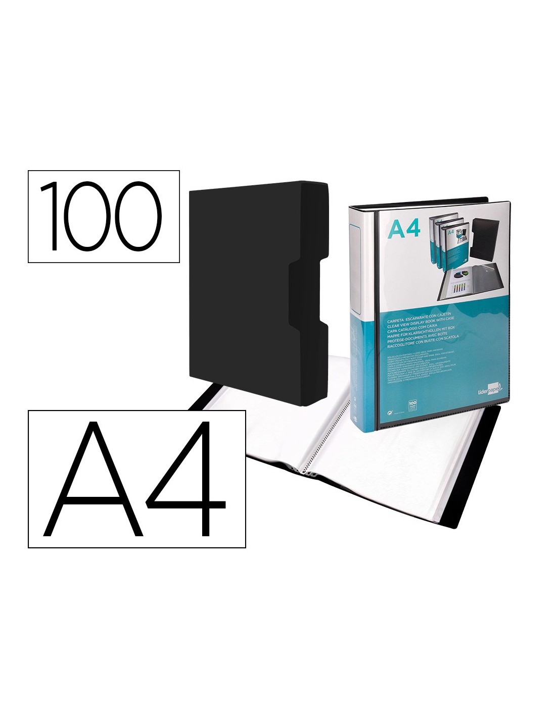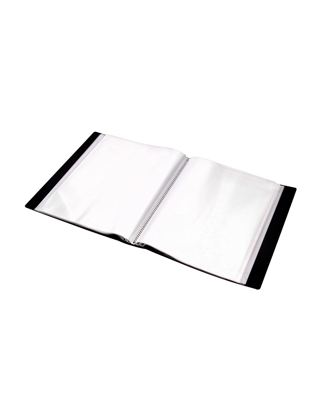Fabricada en polipropileno. Con portada y lomo de 60 mm personalizable. Formato DIN A4. Con 100 fundas de apertura superior. Incluye cajetín. Portada de 1000 micras. Fundas de 40 micras.