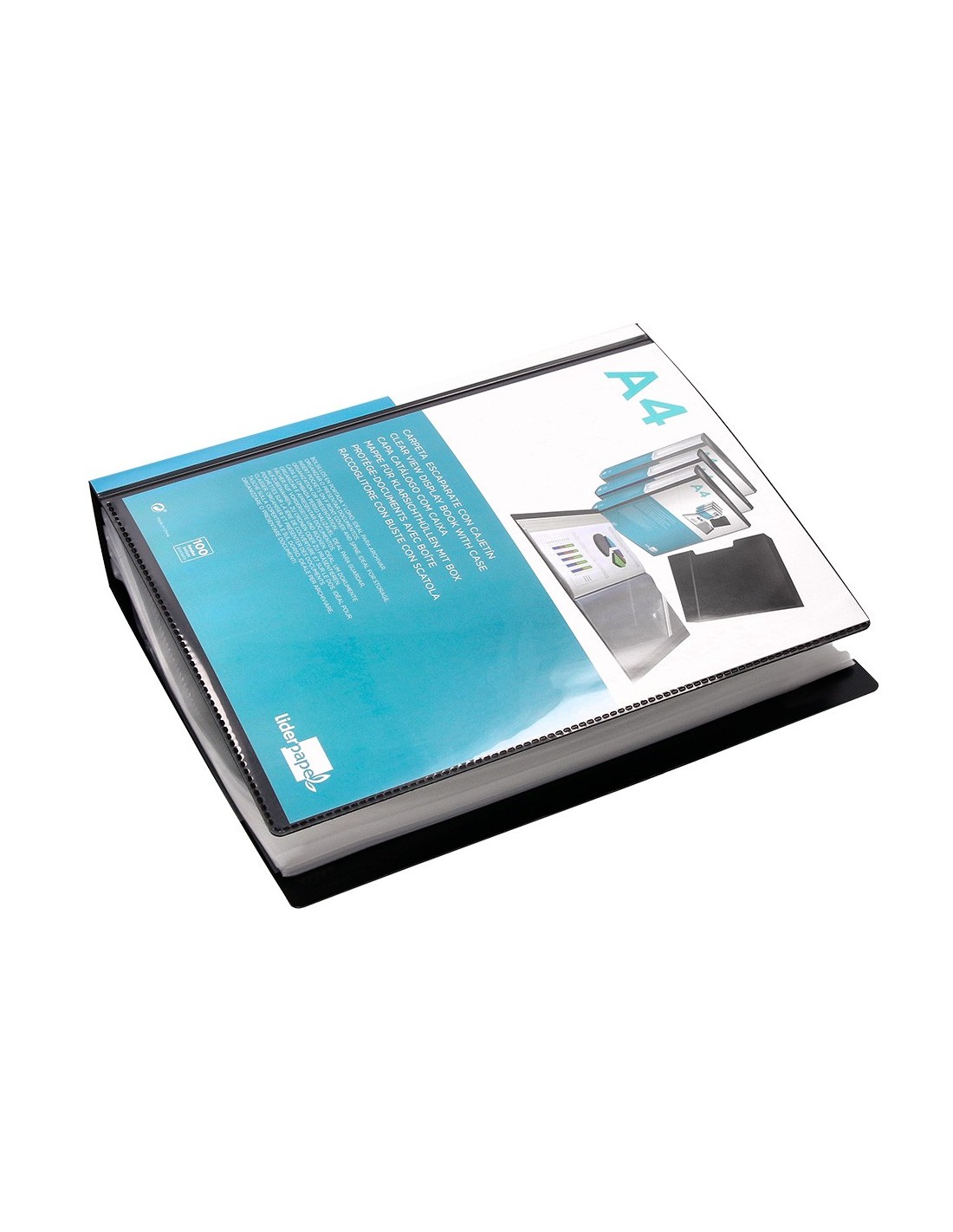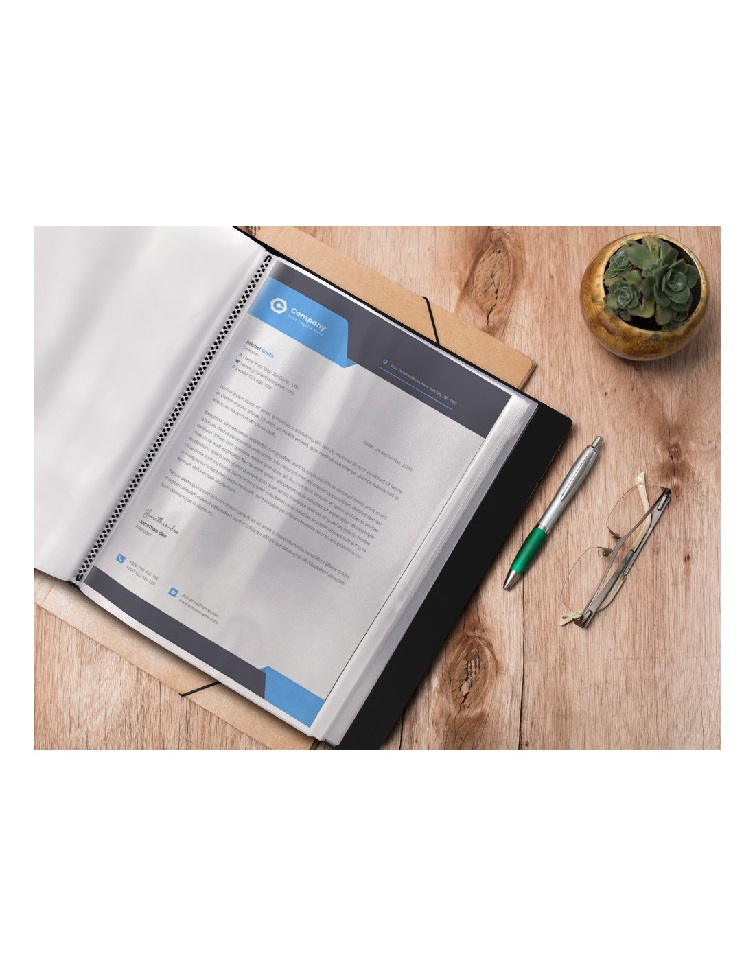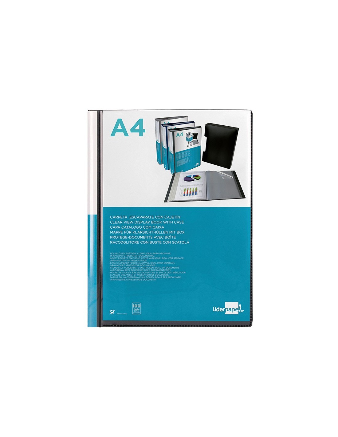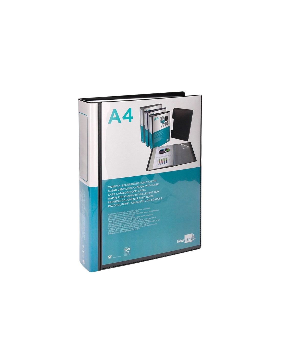 Fabricada en polipropileno. Con portada y lomo de 60 mm personalizable. Formato DIN A4. Con 100 fundas de apertura superior. Incluye cajetín. Portada de 1000 micras. Fundas de 40 micras.