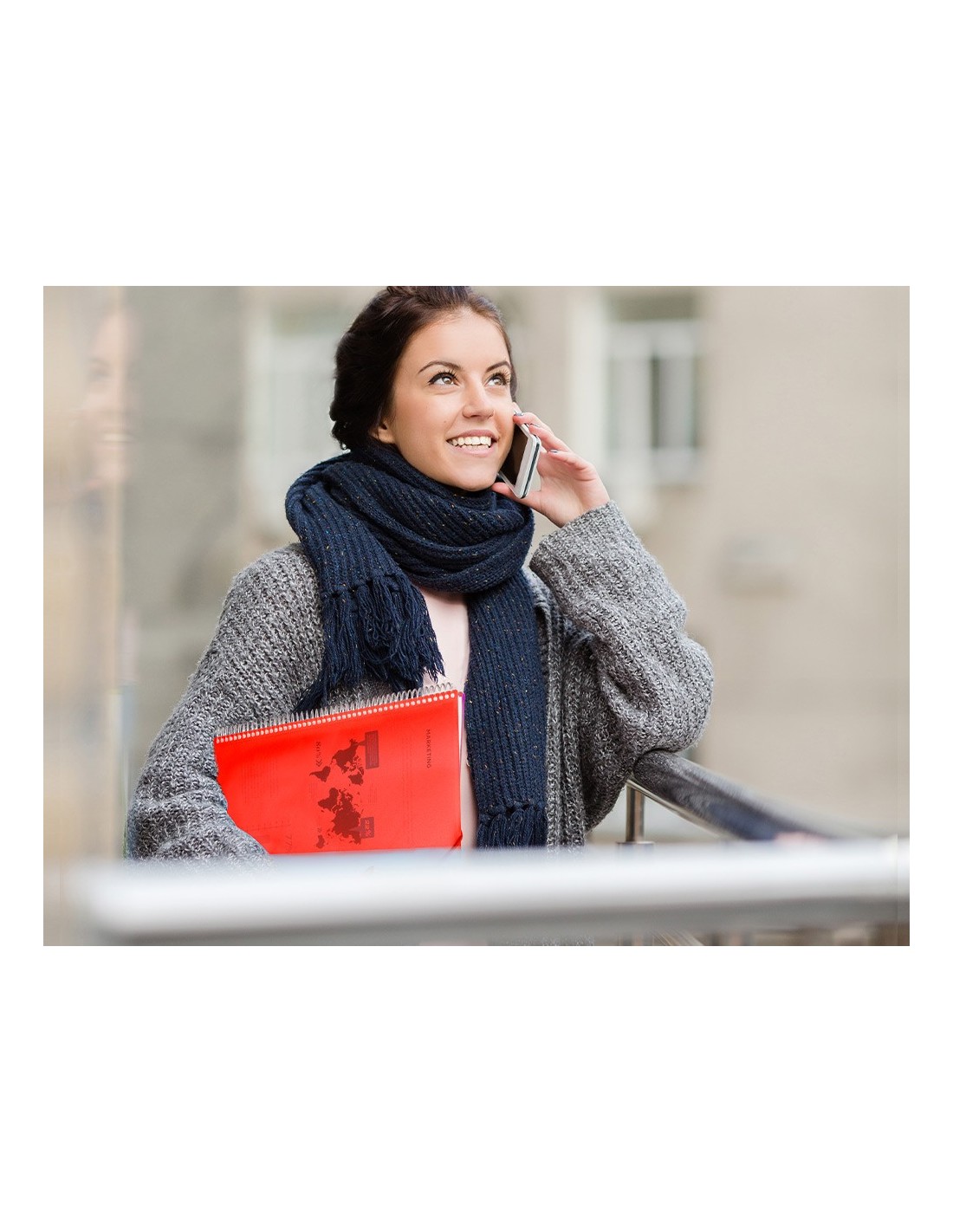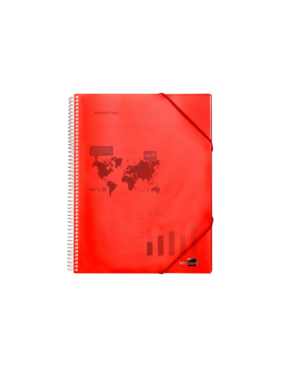 Carpeta escaparate fabricada en polipropileno translúcido. Cubierta rígida. Encuadernada con espiral para mayor comodidad y cierre con gomilla. Portada 750 micras. Fundas 75 micras.