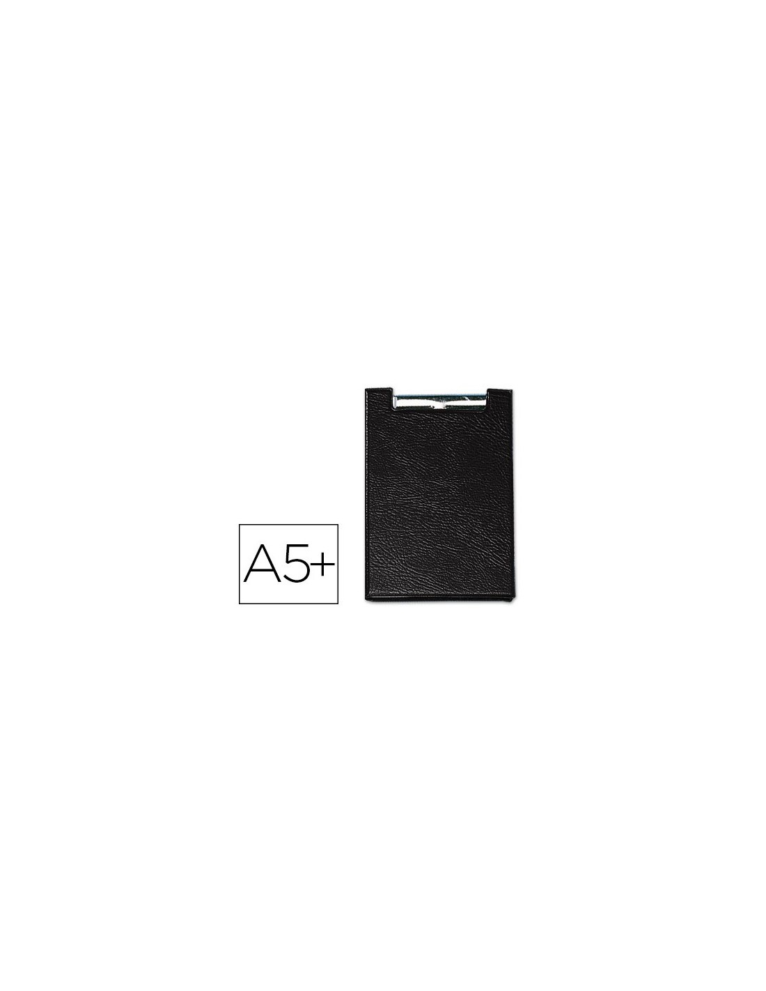 Carpeta con pinza. Fabricada en cartón forrado en plástico soldado, interior y exteriormente. Mecanismo niquelado. Color negro.