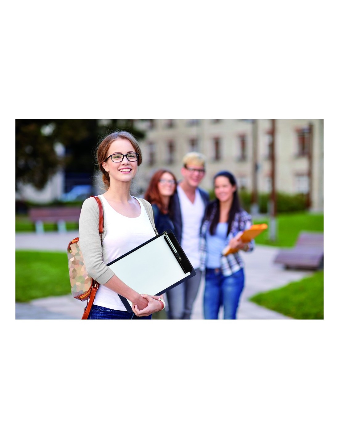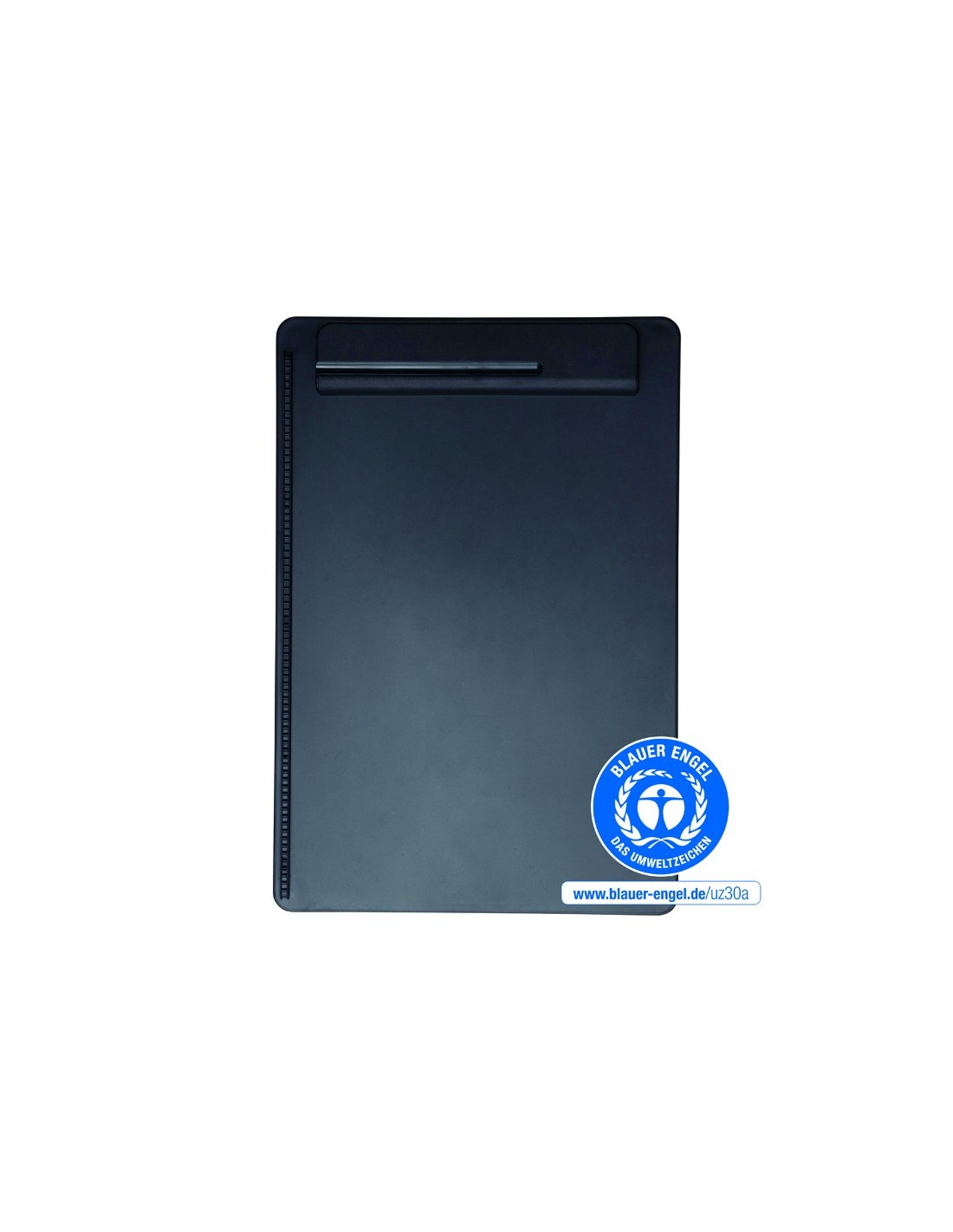 Fabricado con más del 85 % de PS plástico reciclado (material postconsumo). Galardonada con la etiqueta ecológica Ángel Azul. Made in Germany: fabricación sostenible y socialmente responsable. Garantía: 3 años. Práctico: tope para papel a la izquierda, soporte integrado para utensilios de escritura con clip. Estable: pinza ancha con fuertes muelles metálicos. Ancho desujeción: aprox. 0,8 cm. Grosor del panel: 0,3 cm.