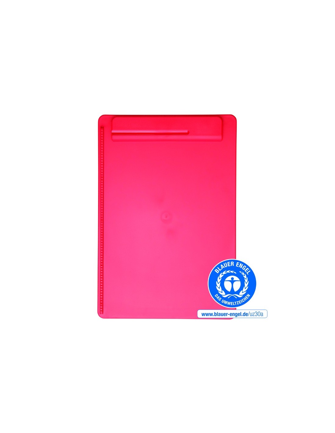 Fabricado con más del 85 % de PS plástico reciclado (material postconsumo). Galardonada con la etiqueta ecológica Ángel Azul. Made in Germany: fabricación sostenible y socialmente responsable. Garantía: 3 años. Práctico: tope para papel a la izquierda, soporte integrado para utensilios de escritura con clip. Estable: pinza ancha con fuertes muelles metálicos. Ancho desujeción: aprox. 0,8 cm. Grosor del panel: 0,3 cm.