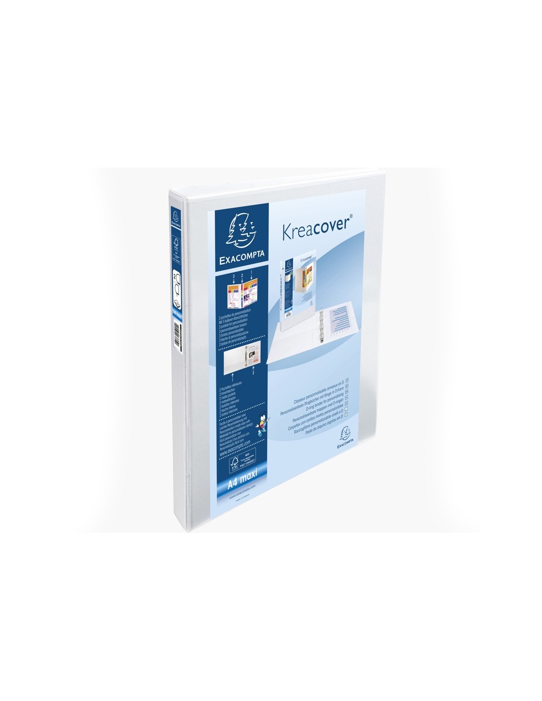 Carpeta de anillas personalizable fabricada en polipropileno. Anillas mixtas. 3 bolsillos exteriores y un bolsillo interior horizontal. Color blanco. Formato DIN A4+.