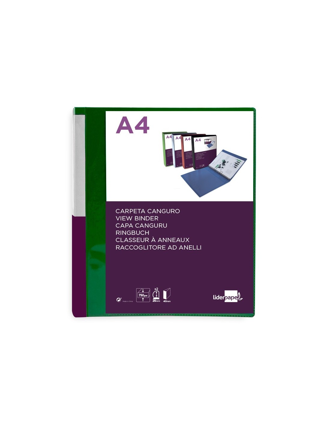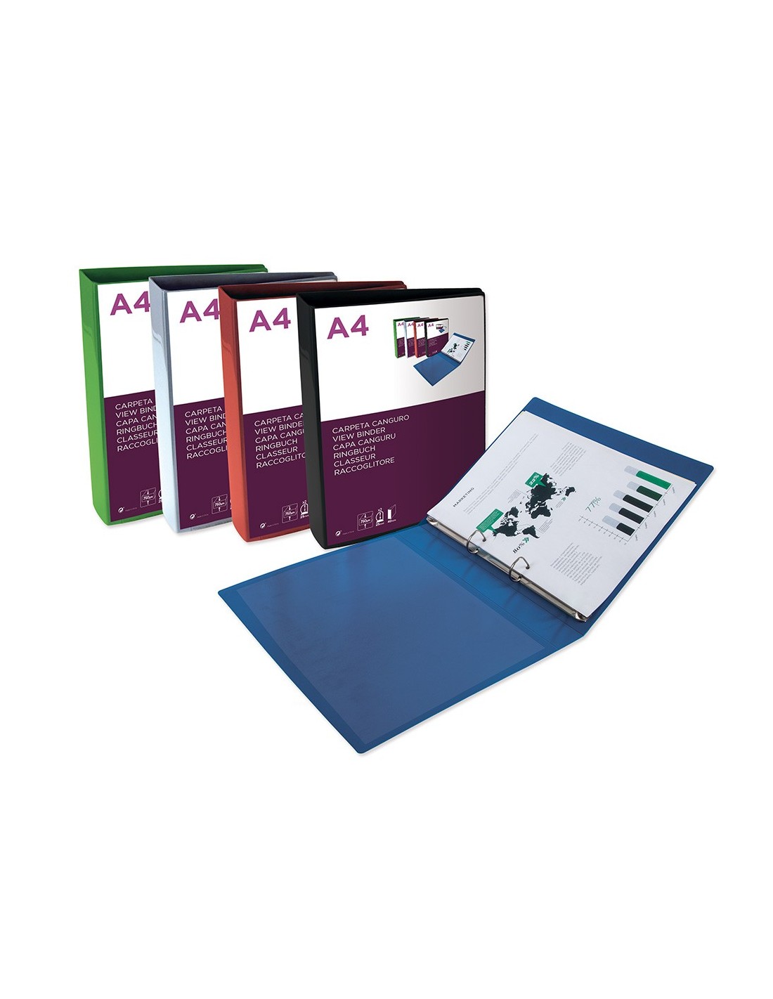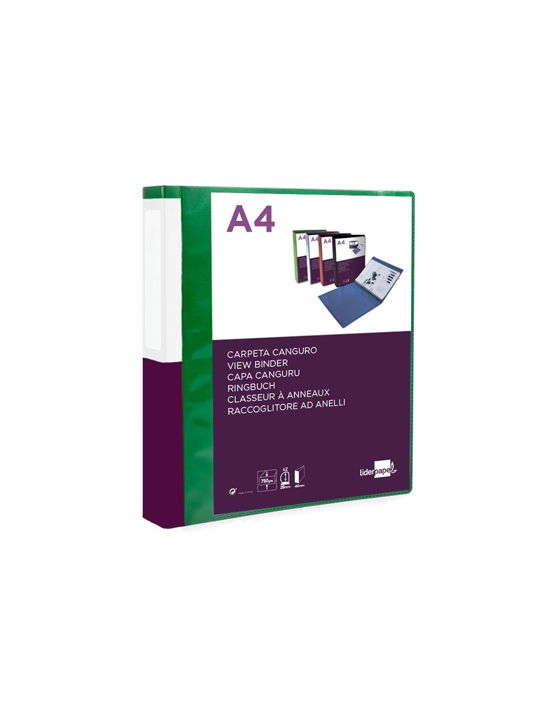 Carpeta de anillas mixtas fabricada en polipropileno. Con funda en la portada que permite su personalización e identificación. Formato DIN A4.