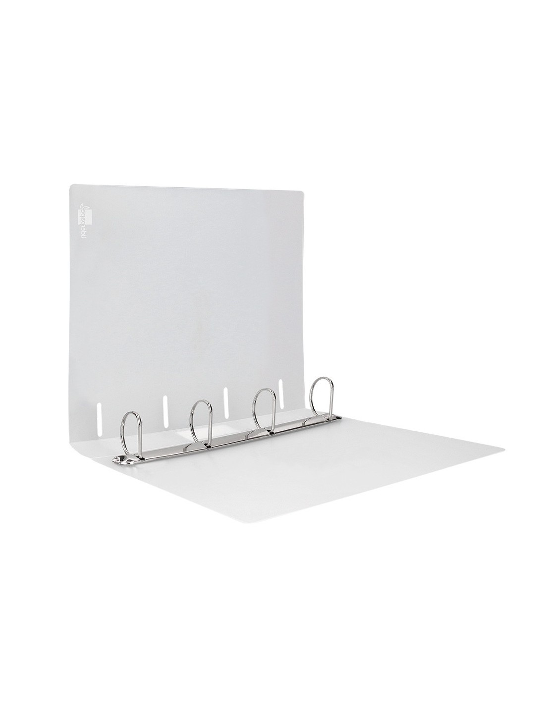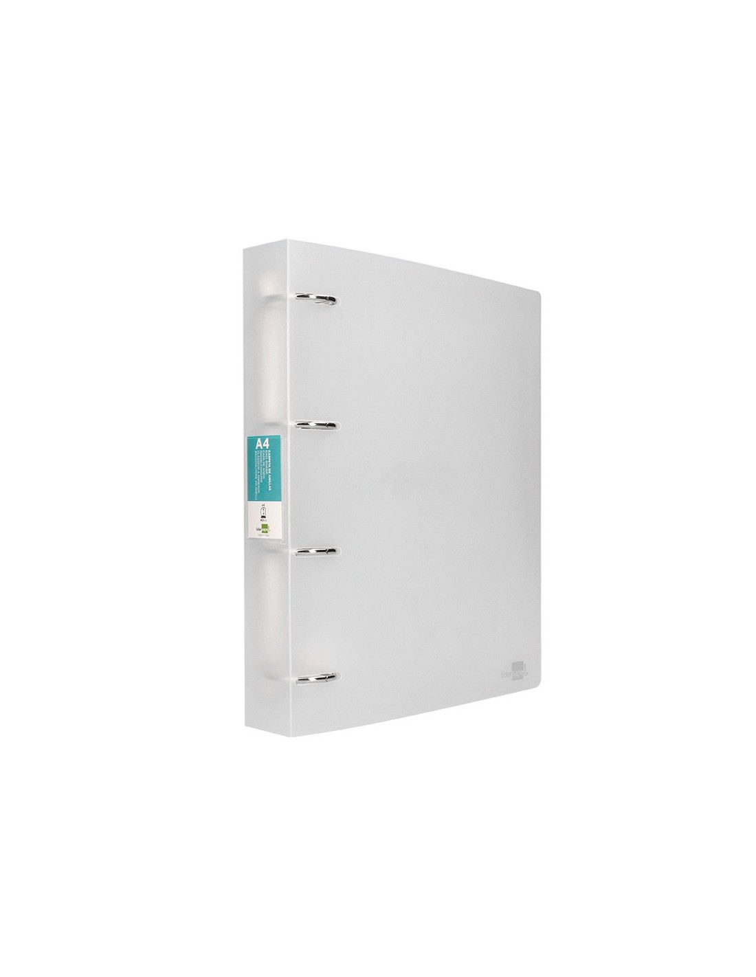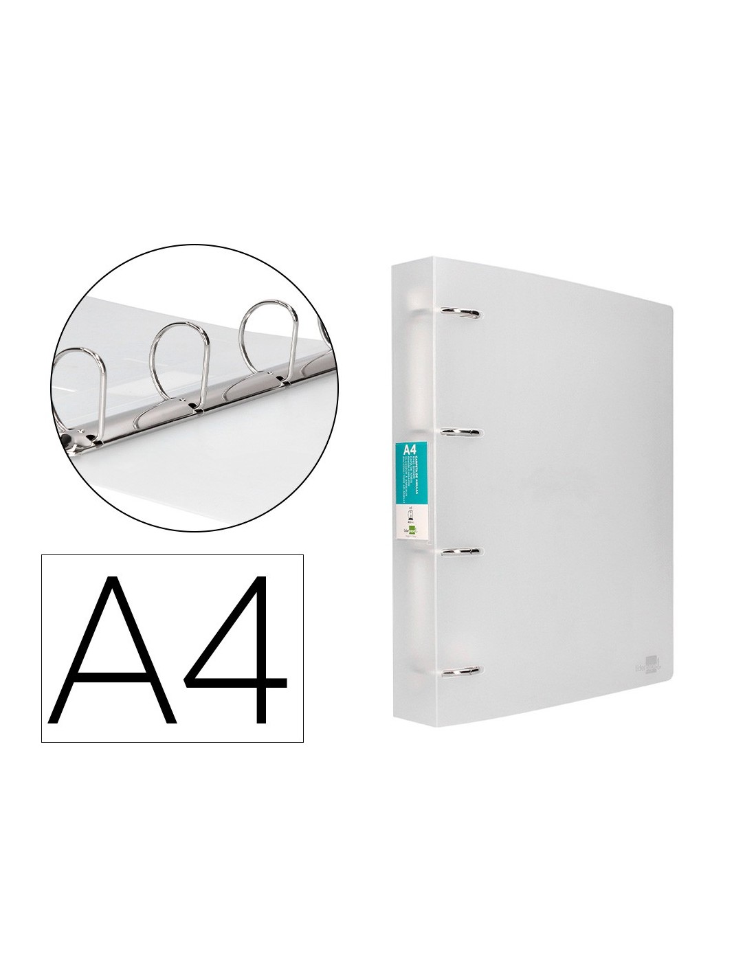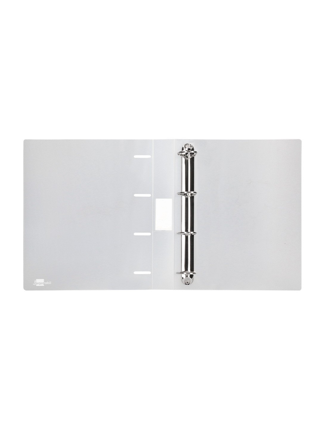 Fabricada en polipropileno. Carpeta de anillas de con tarjetero. Ancho de lomo: 40 mm. Formato DIN A4. Medidas: 260 x 315 mm.