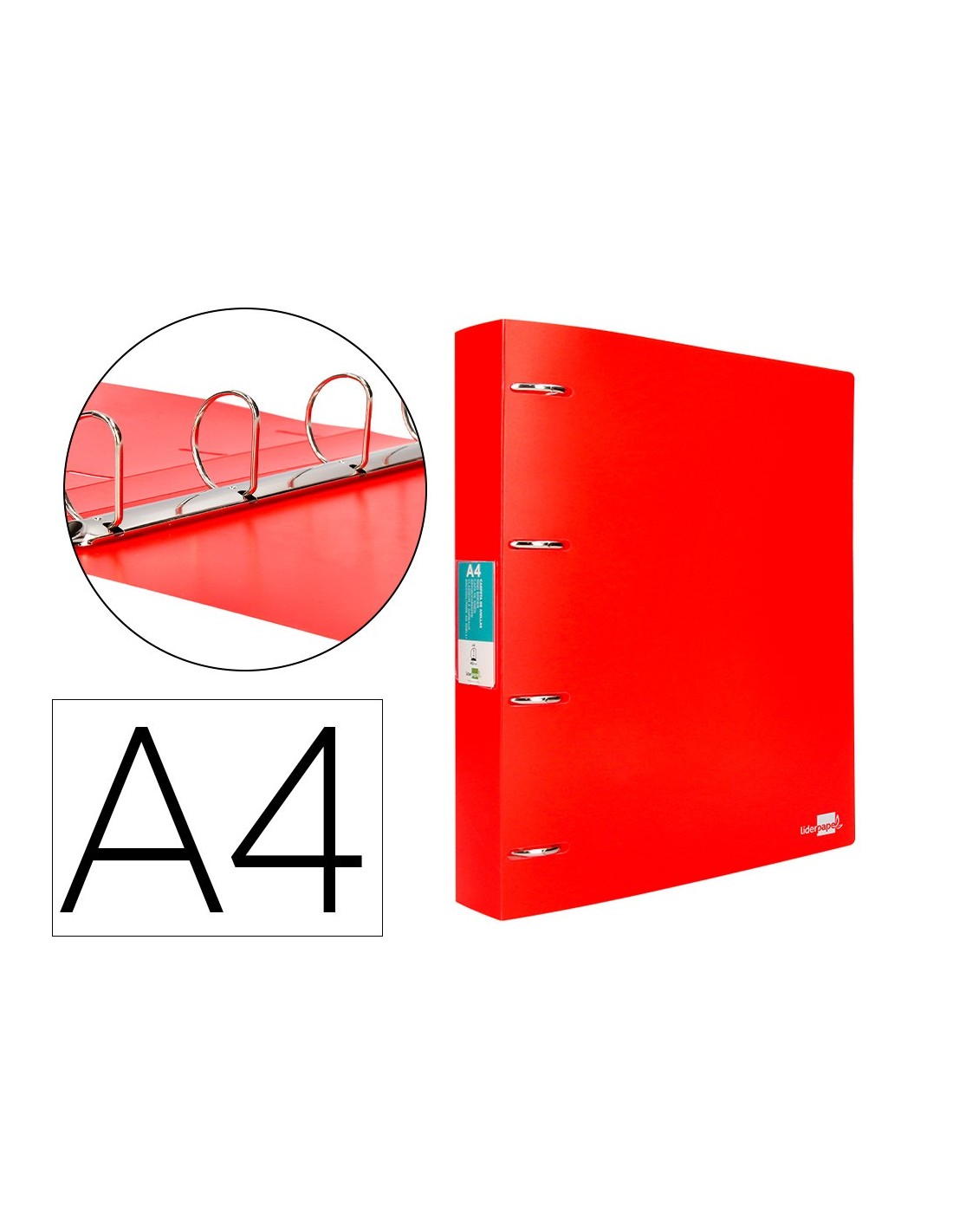 Fabricada en polipropileno. Carpeta de anillas de con tarjetero. Ancho de lomo: 40 mm. Formato DIN A4. Medidas: 260 x 315 mm.