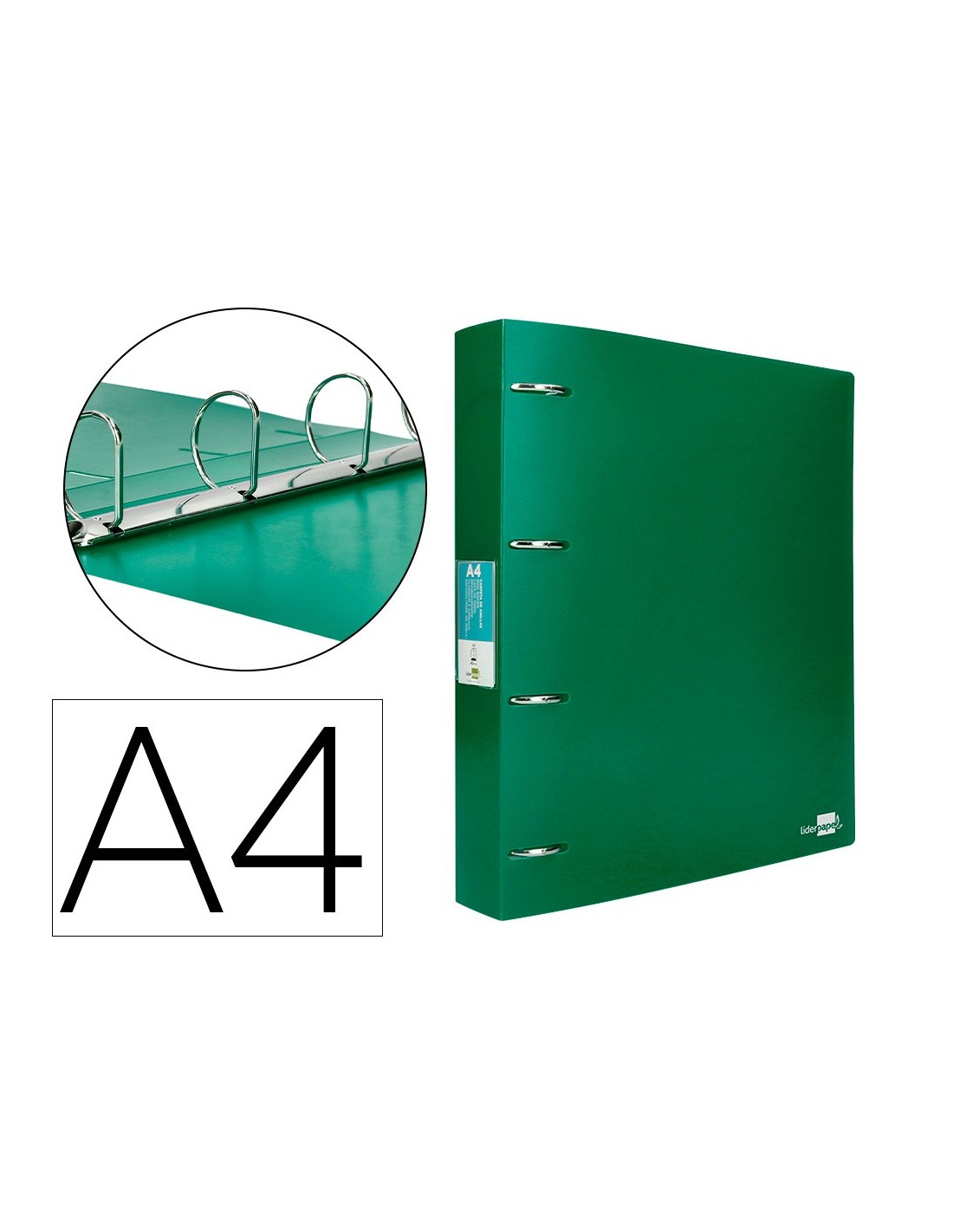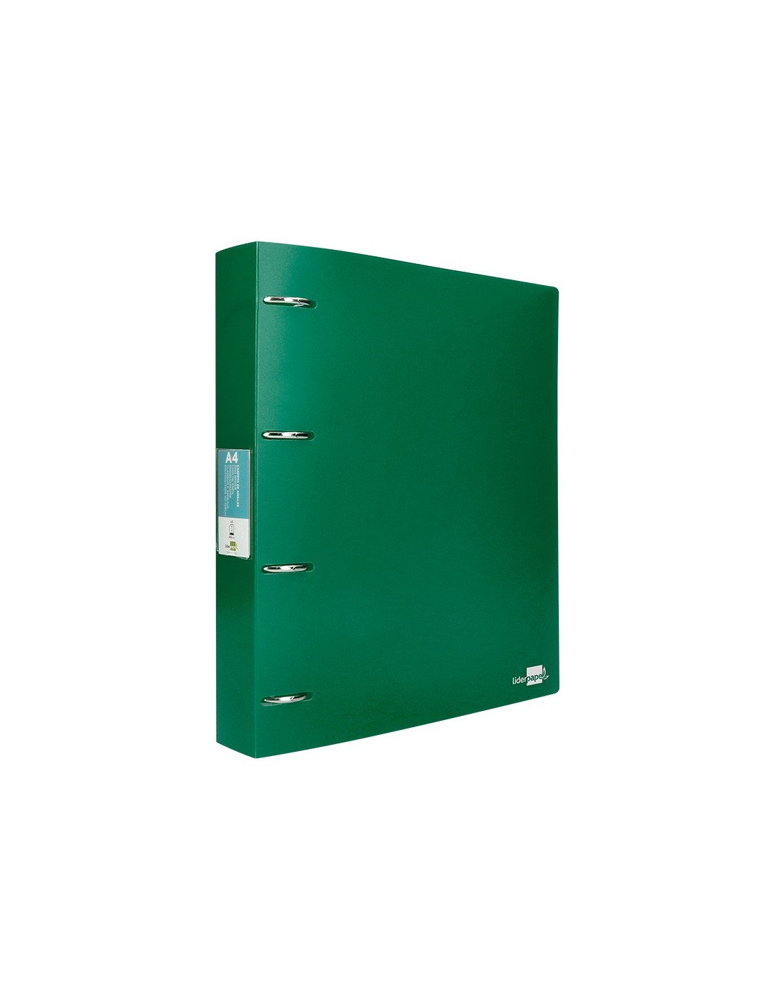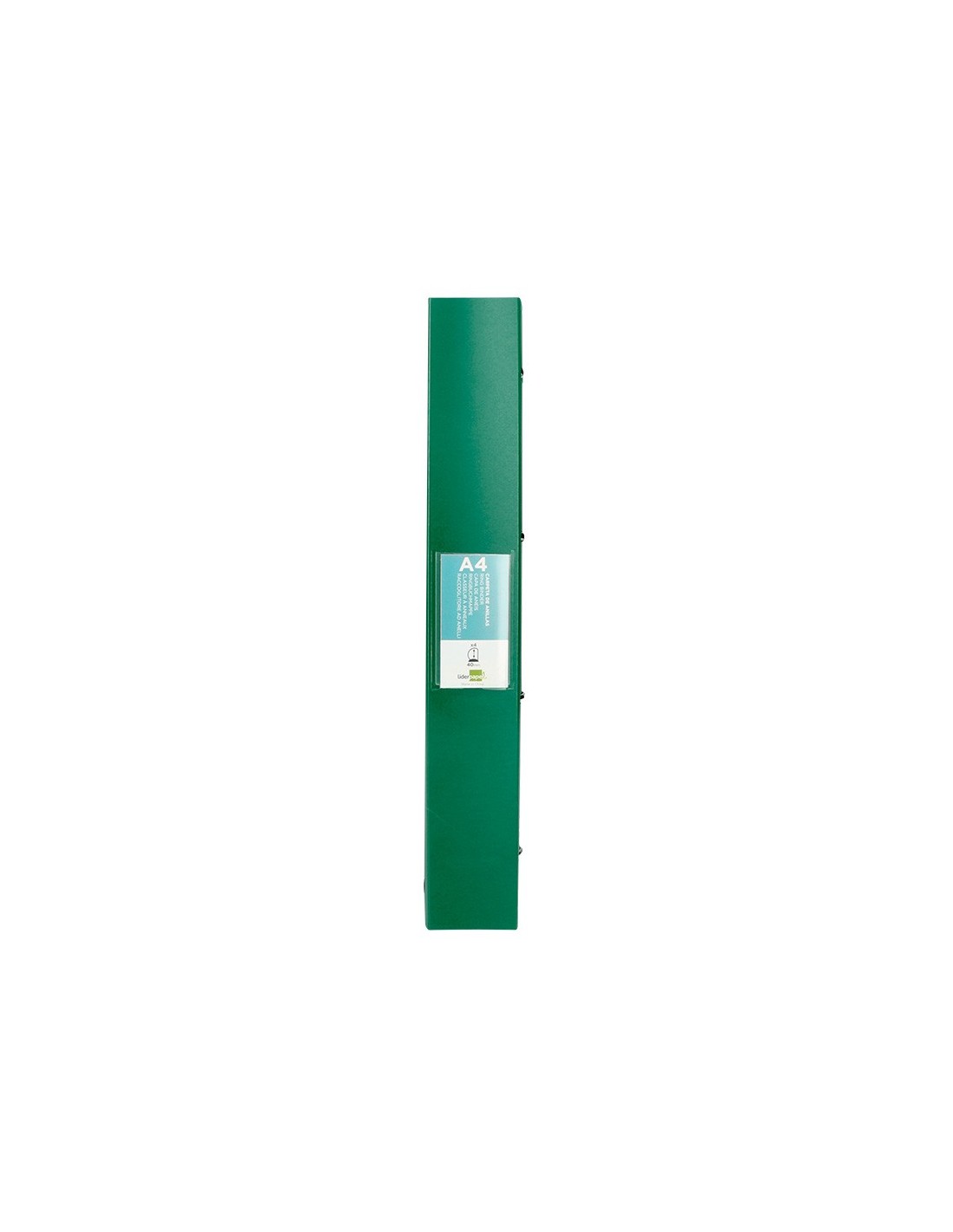 Fabricada en polipropileno. Carpeta de anillas de con tarjetero. Ancho de lomo: 40 mm. Formato DIN A4. Medidas: 260 x 315 mm.