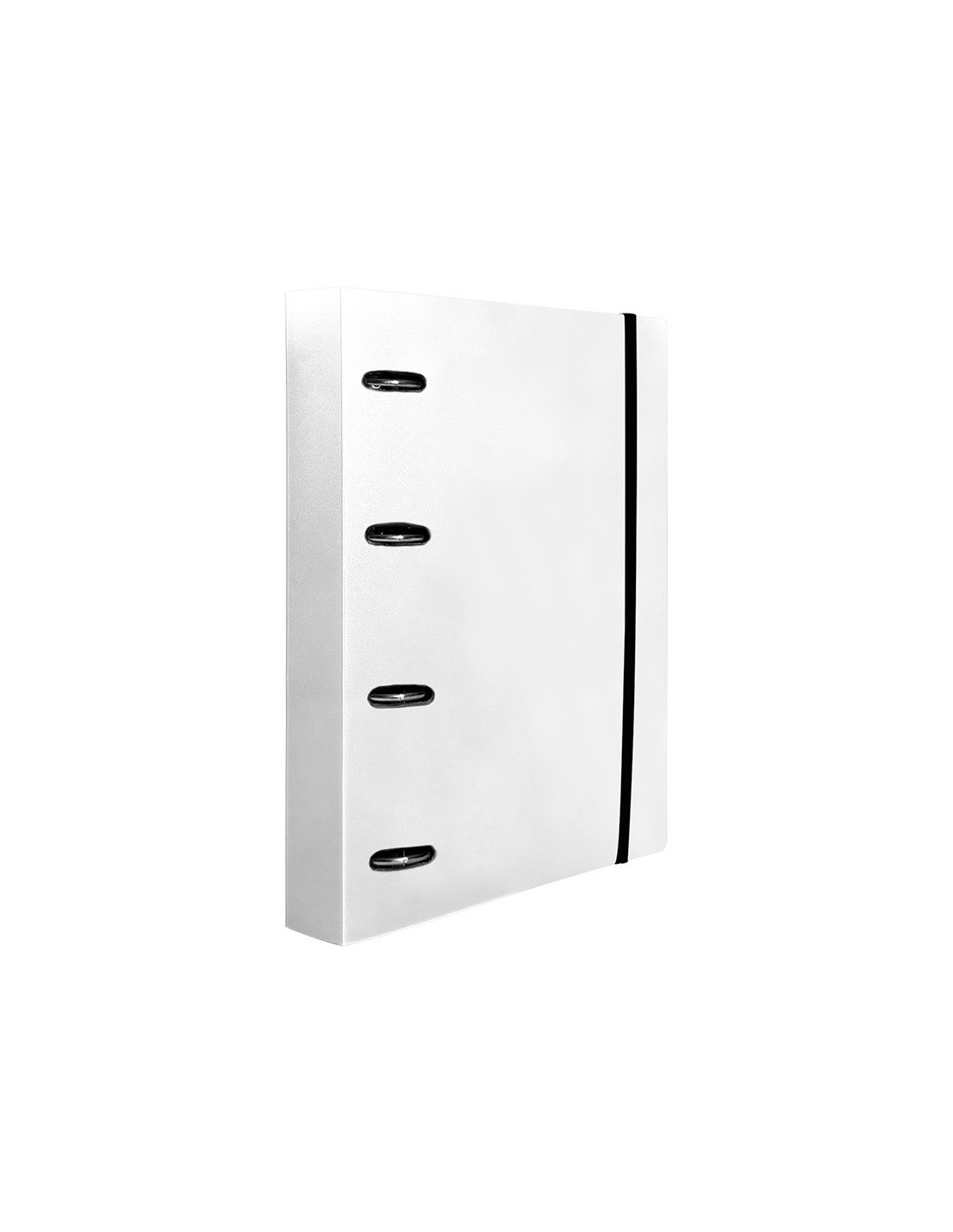 Carpeta con recambio de 4 anillas mixtas, fabricada en polipropileno de 1000 micras. Cierre con gomilla del mismo color. Con ranuras para anillas. Papel interior de 80 g/m² con cuadricula 5 x 5 mm y 4 taladros. 100 hojas.