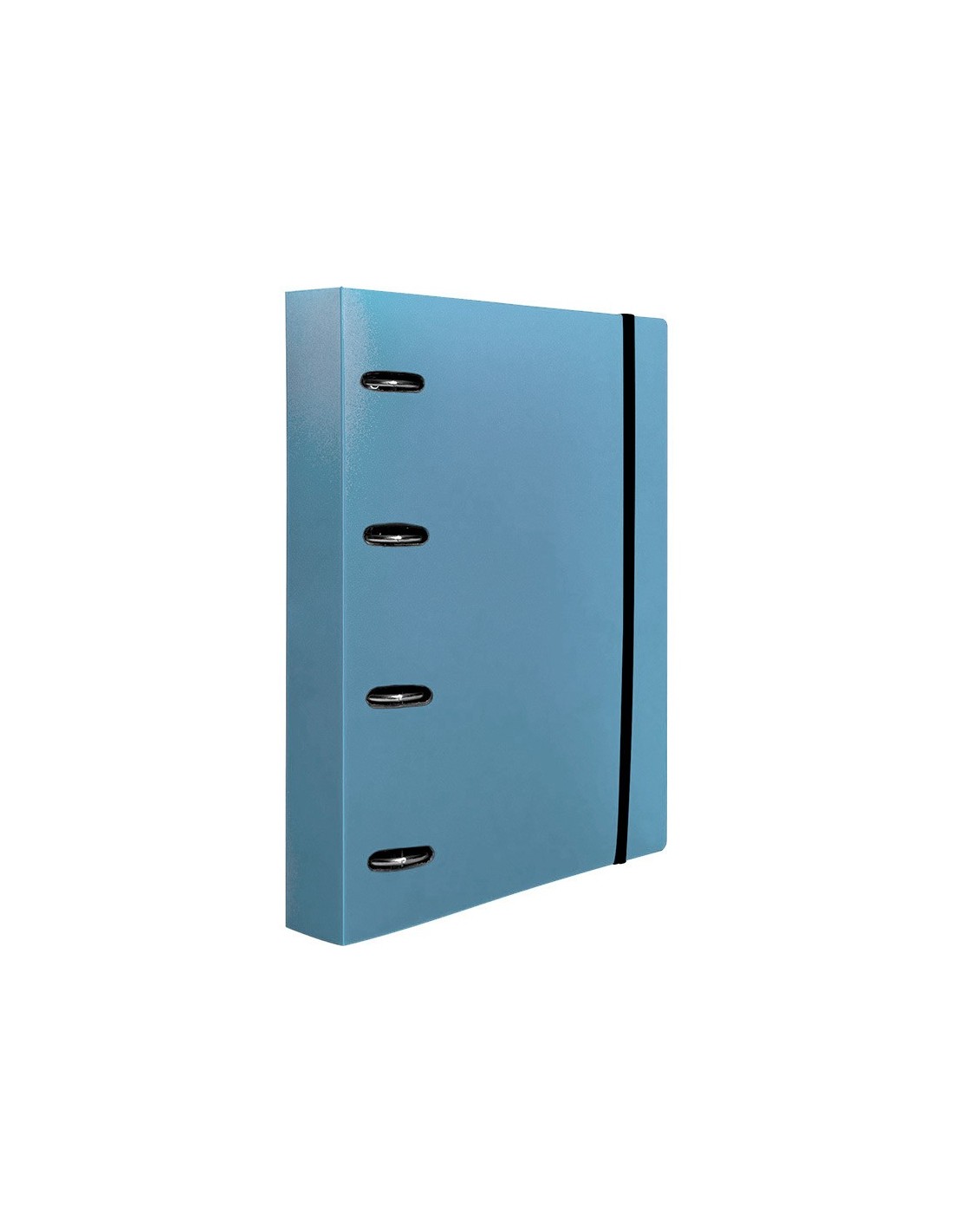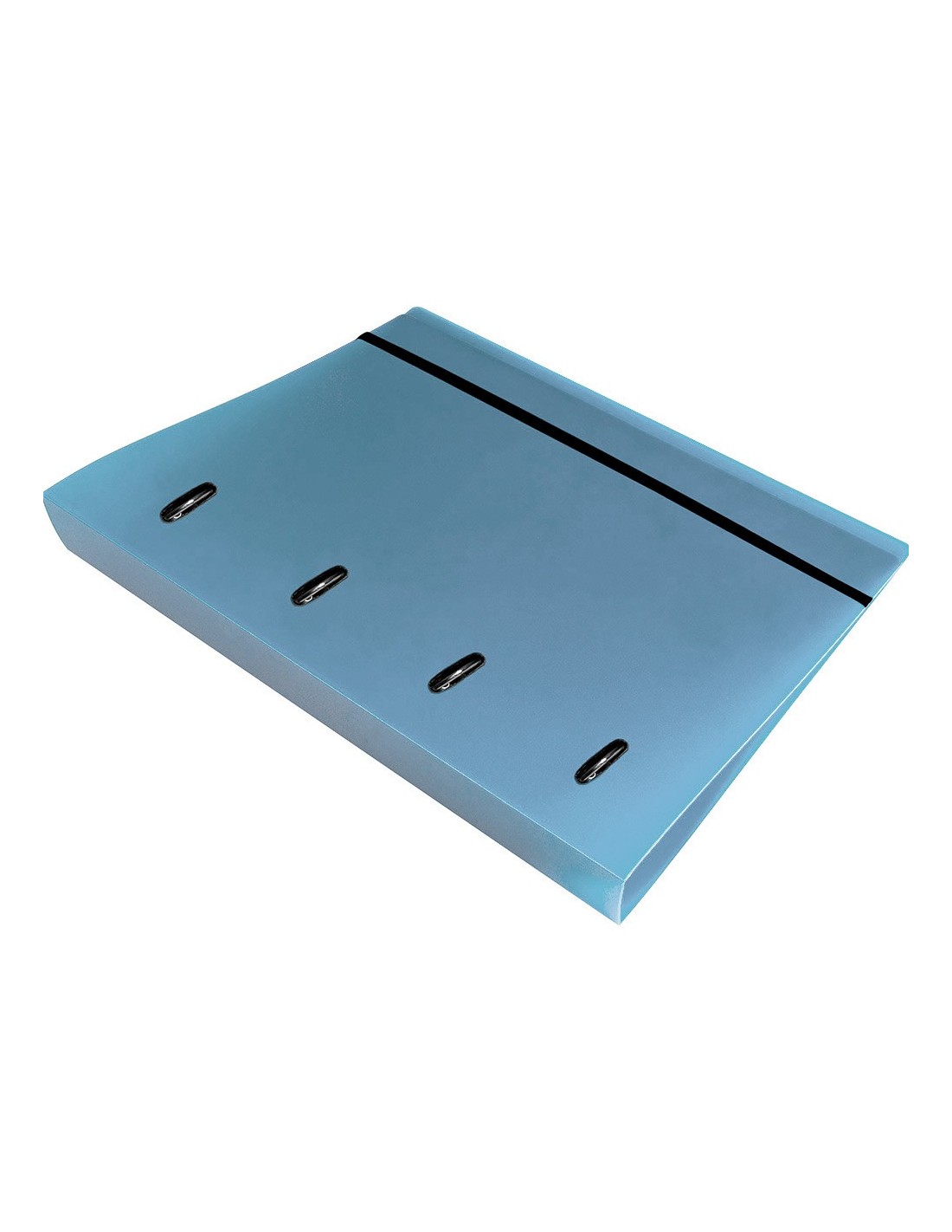 Carpeta con recambio de 4 anillas mixtas, fabricada en polipropileno de 1000 micras. Cierre con gomilla del mismo color. Con ranuras para anillas. Papel interior de 80 g/m² con cuadricula 5 x 5 mm y 4 taladros. 100 hojas.