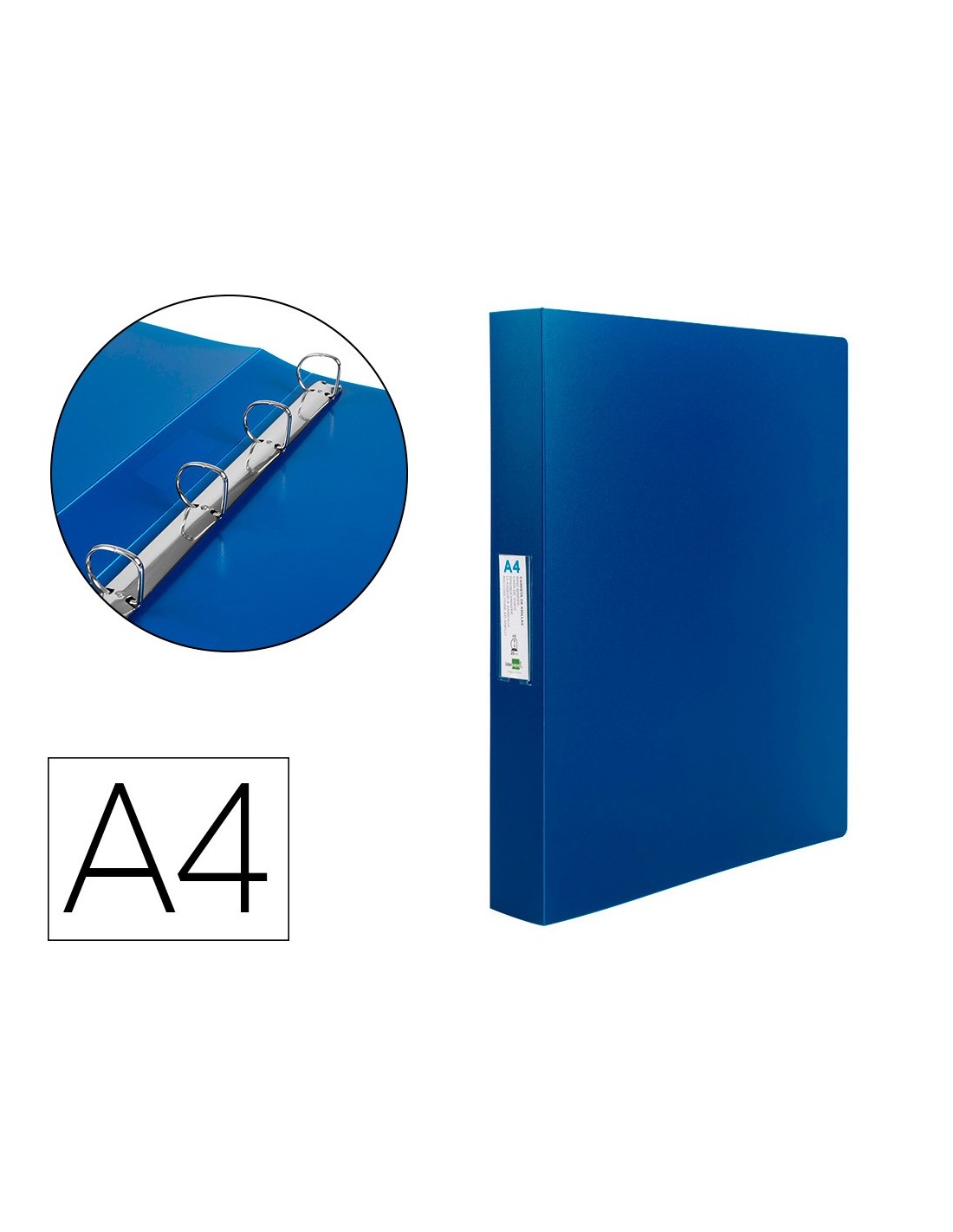 Fabricada en polipropileno. Carpeta de anillas de con tarjetero. Ancho de lomo: 40 mm. Formato DIN A4. Medidas: 260 x 315 mm.