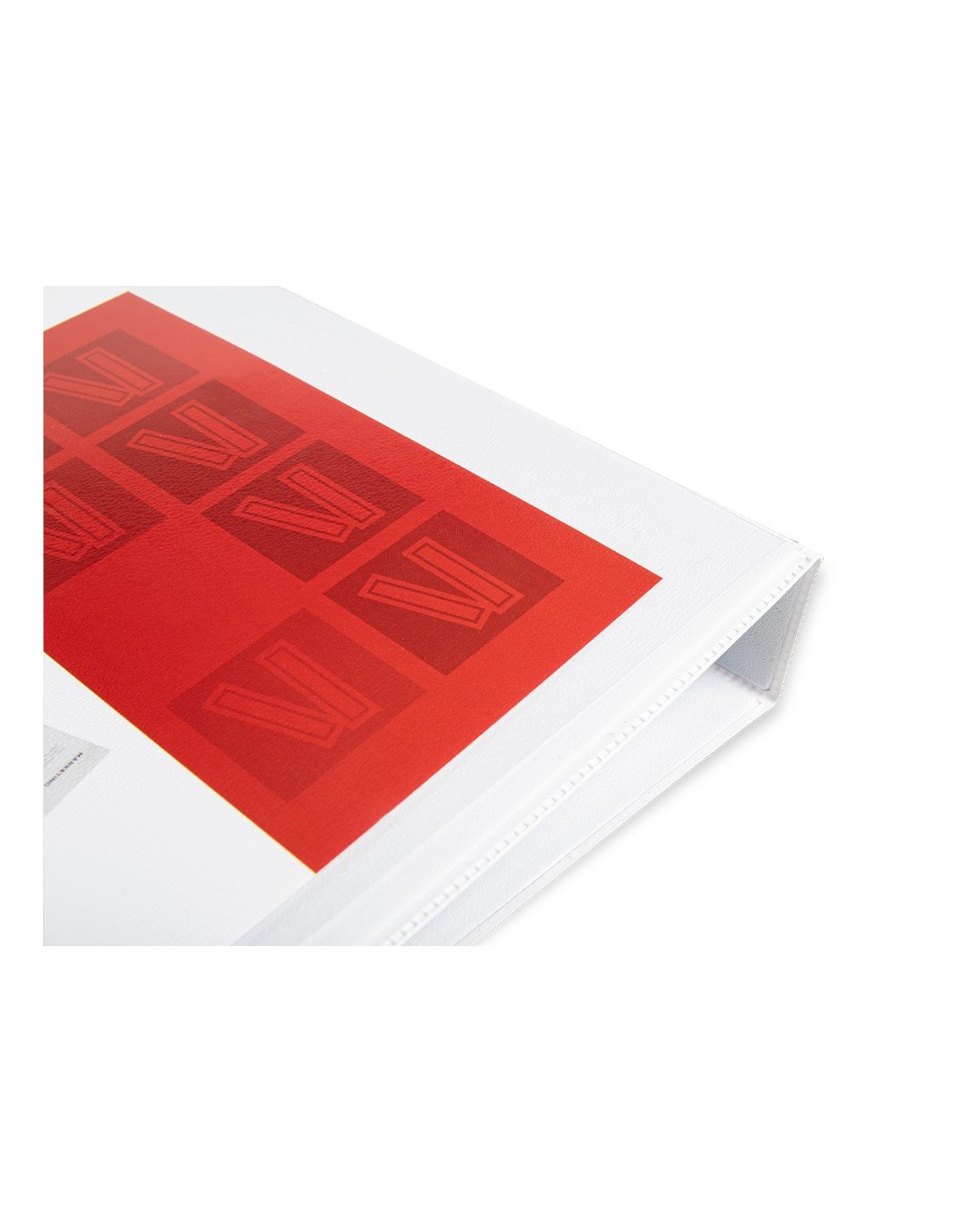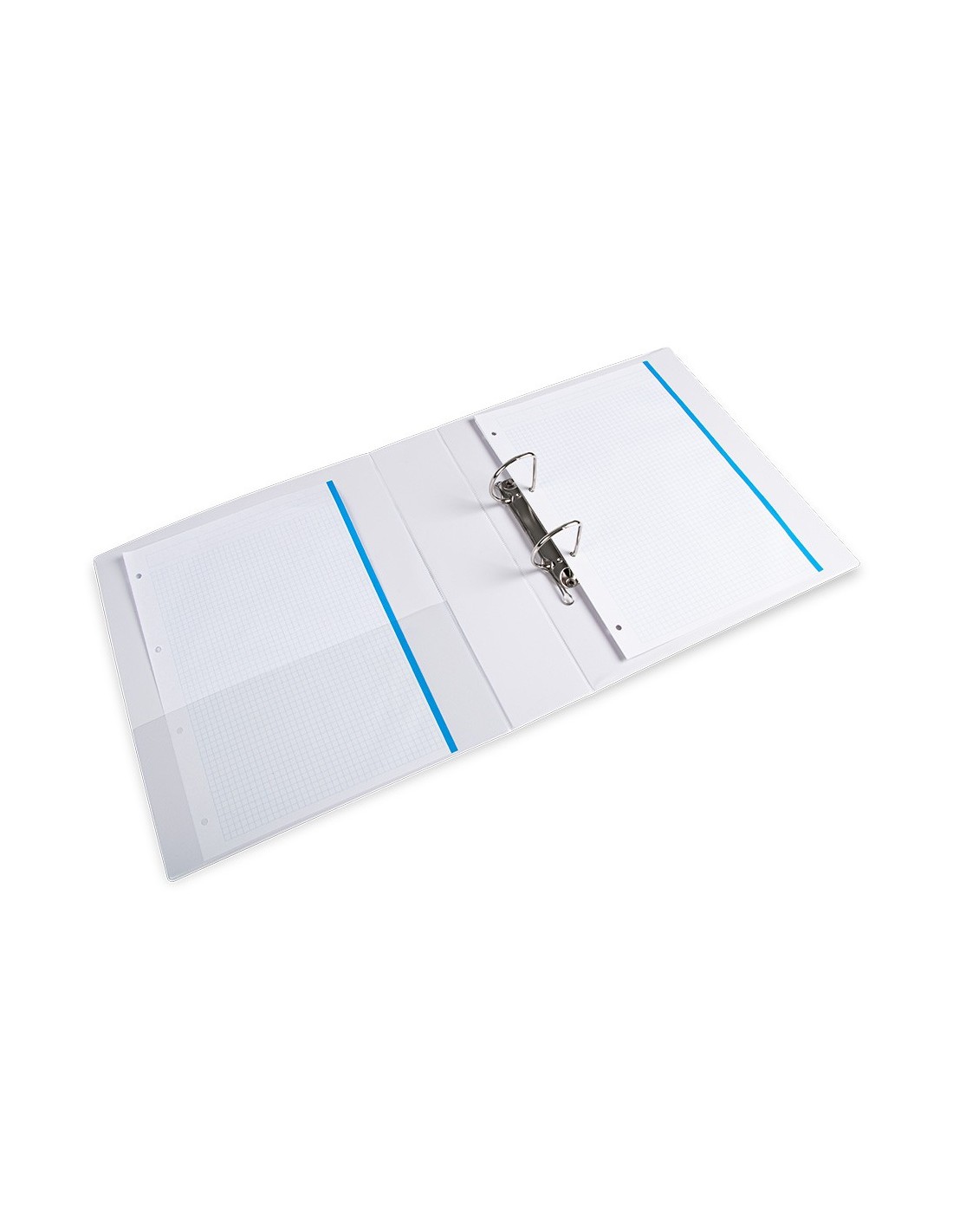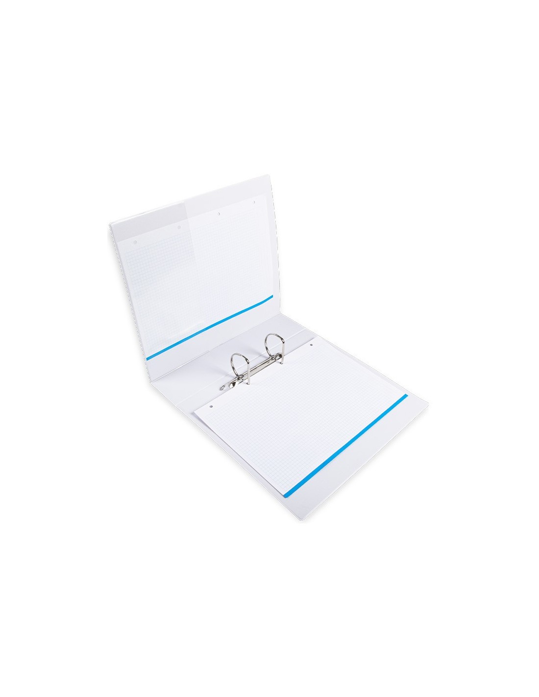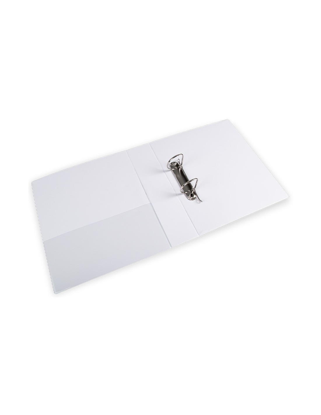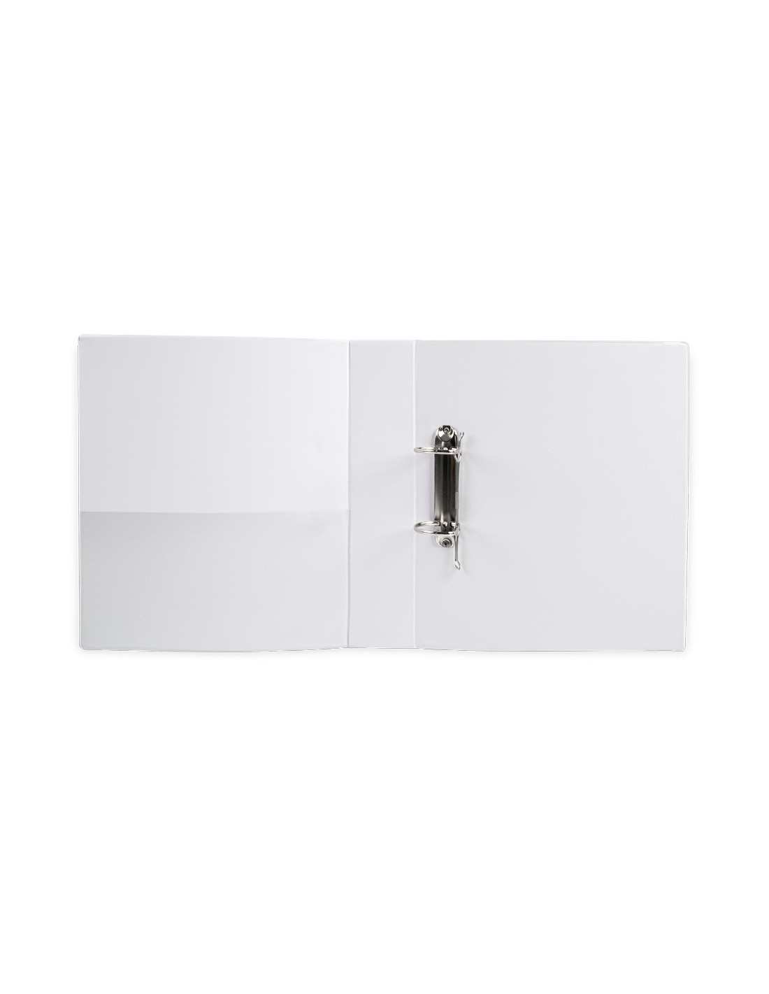 Carpeta fabricada en cartón forrado en plástico soldado de color blanco. 5 mm de grosor. Con funda transparente soldada en su interior. Carpeta con funda en la portada, contraportada y lomo que permite su personalización e identificación. Anillas mixtas. Con compresor metálico. Formato DIN A4. Medidas: 283 x 320 mm.