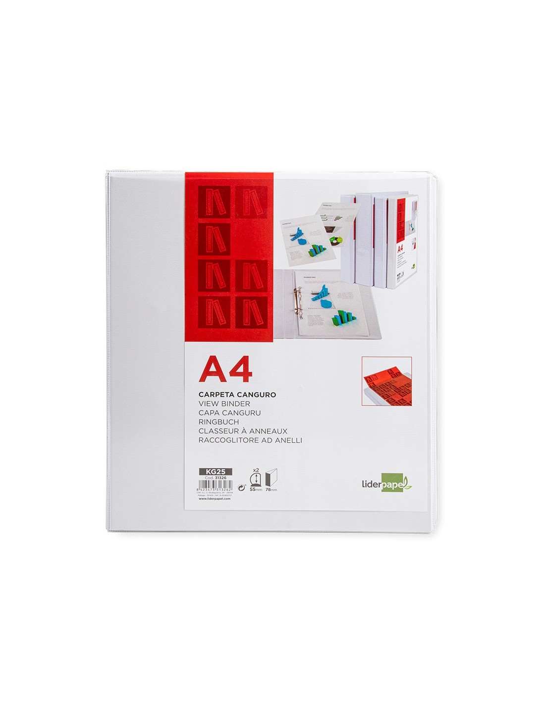 CARPETA CANGURO 2 A 55 MM PLASTICO DIN A4 BLANCO