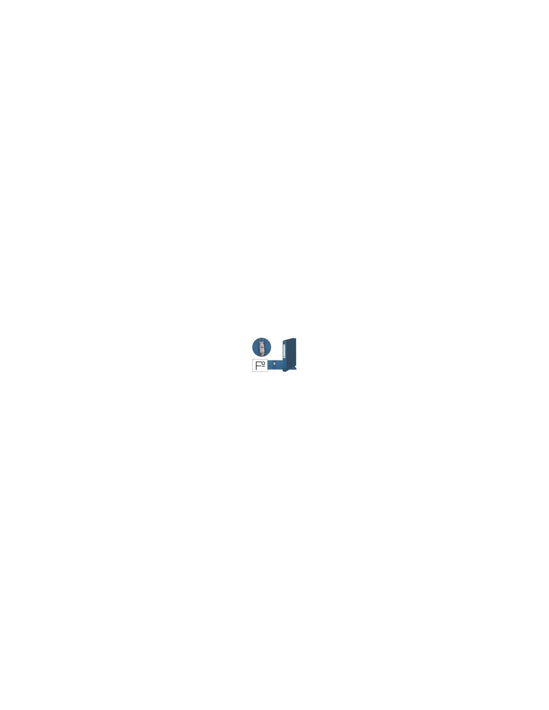 Carpeta de 2 anillas fabricada en cartón forrado en plástico soldado. 3 mm de grosor. Tarjetero en lomo y funda de plástico en interior de portada. Tamaño folio. Medidas: 285 x 335 mm.