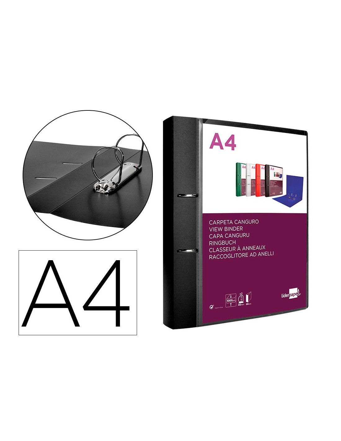 Carpeta de anillas mixtas fabricada en polipropileno. Con funda en la portada que permite su personalización e identificación. Formato DIN A4.
