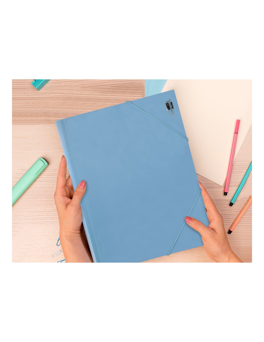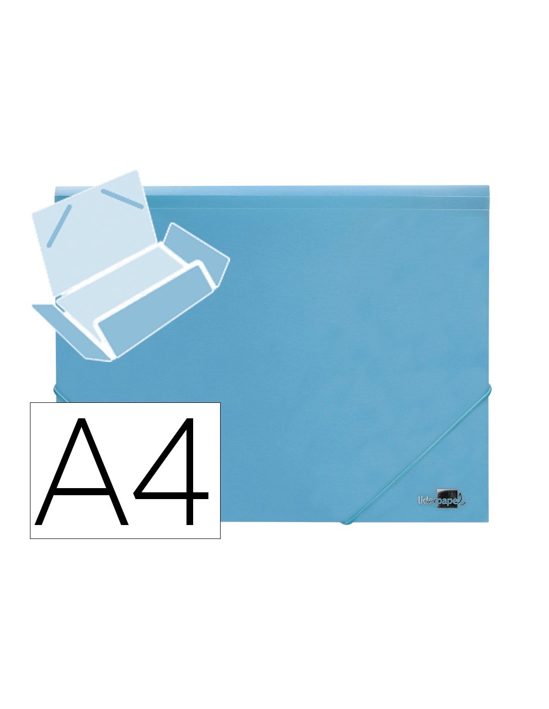 CARPETA GOMAS LIDERPAPEL A4 PP 3 SOLAPAS CELESTE