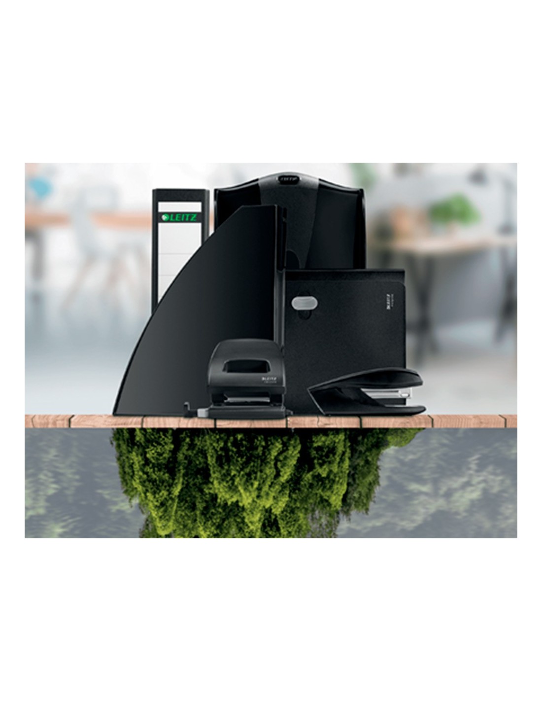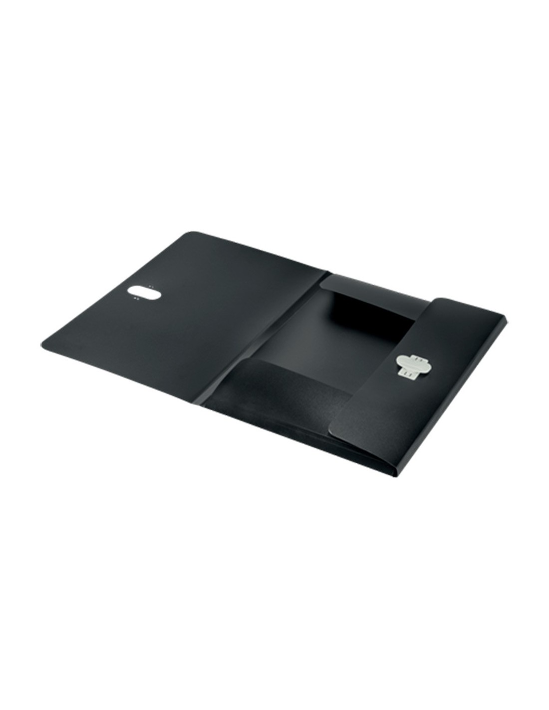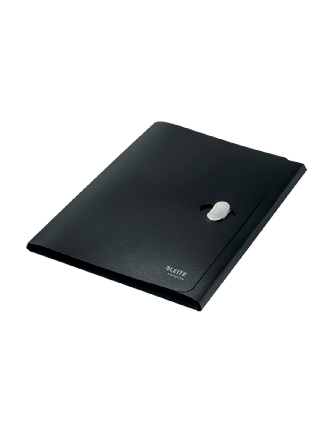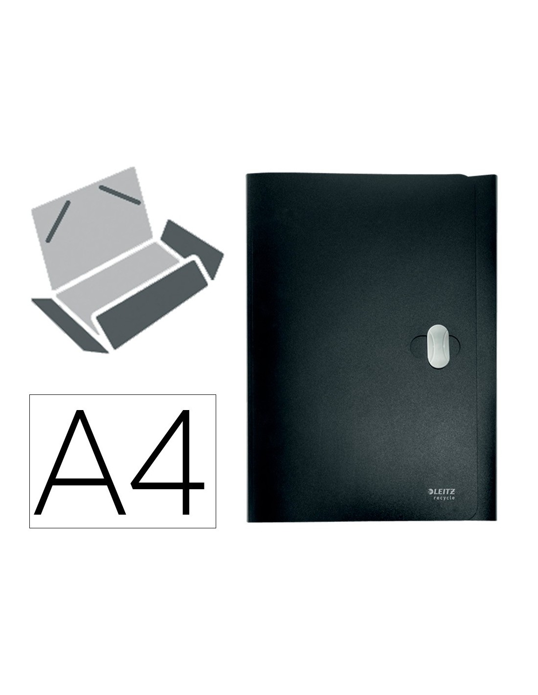 Carpeta fabricada en plástico 80% reciclado y 100% reciclable. Con 3 solapas. Capacidad para 150 hojas DIN A4. Medidas: 235 x 320 mm.
