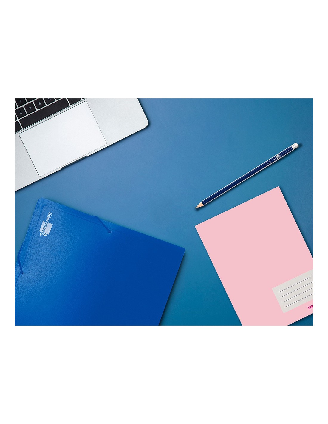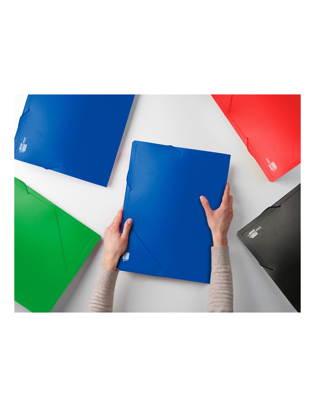 Fabricada en polipropileno. Cierre de gomas. 2 bolsillos para CD´s. Lomo personalizable. Colores opacos. Capacidad 200 hojas. Lomo rígido 50 mm. 700 micras.