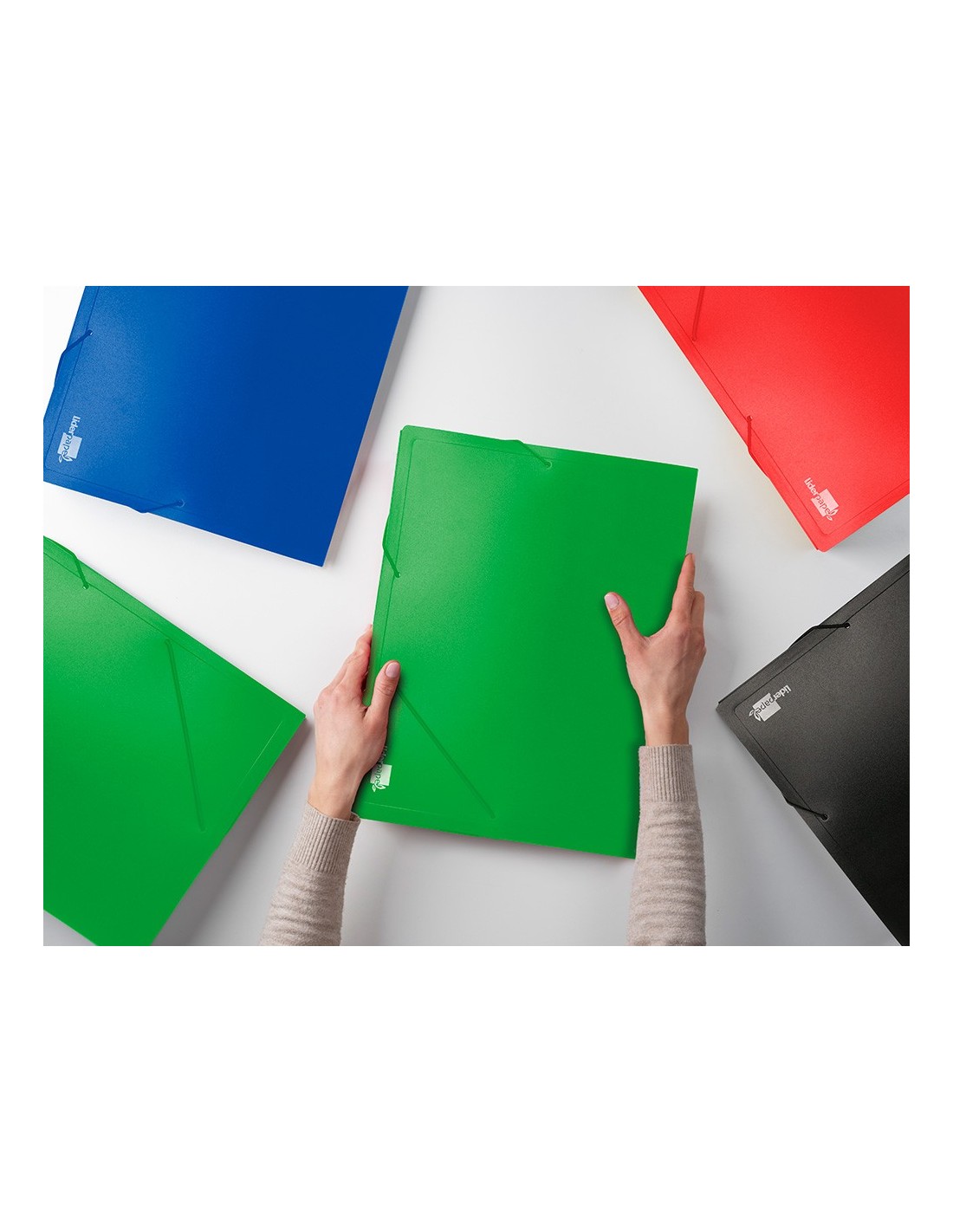 Fabricada en polipropileno. Cierre de gomas. 2 bolsillos para CD's. Lomo personalizable. Colores opacos. Capacidad 200 hojas. Lomo rígido 50 mm. 700 micras.