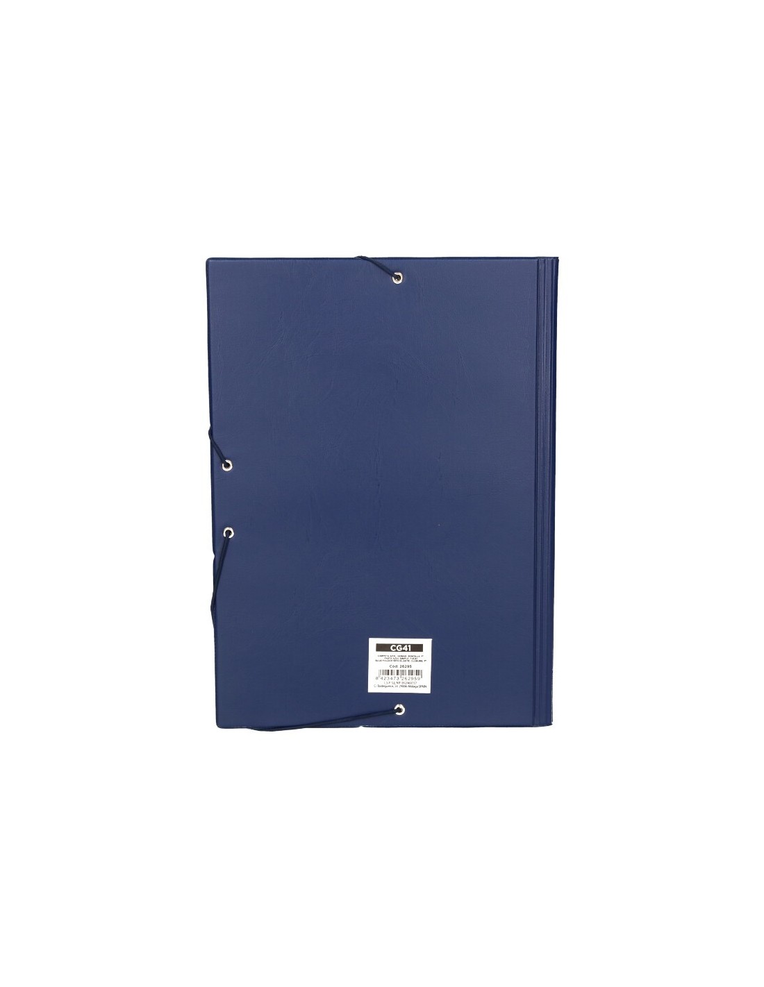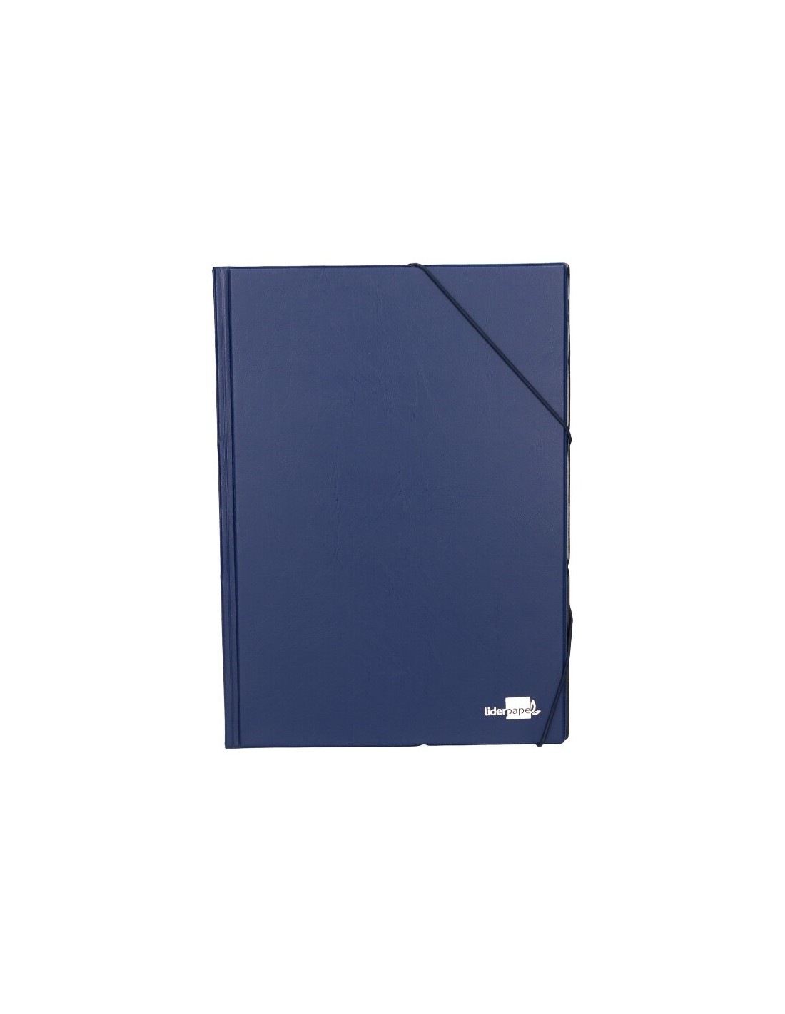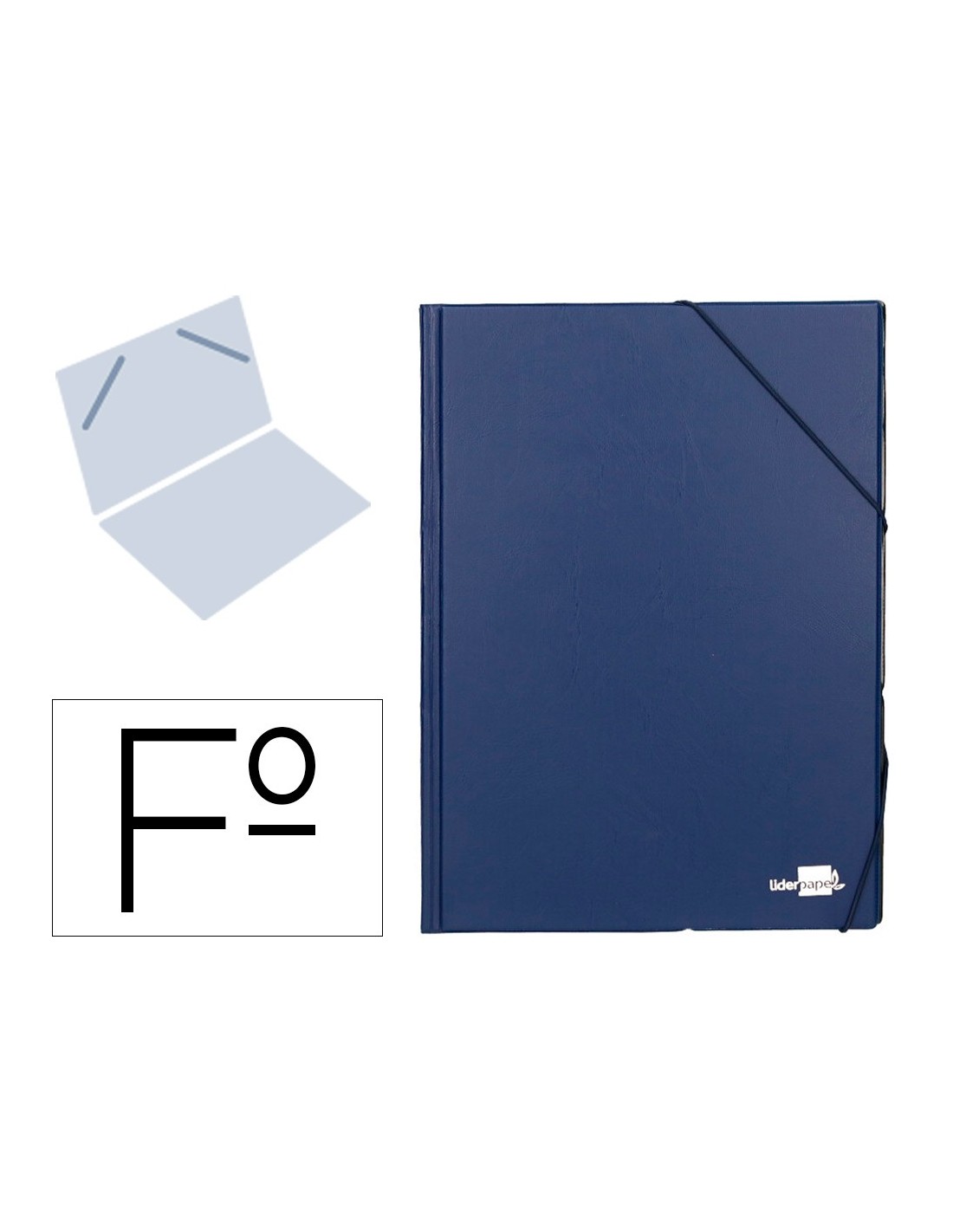 Carpeta fabricada en cartón forrado en PVC soldado unicolor. 3 mm de grosor. Cierre con gomas. Lomo flexible. Tamaño folio. Medidas: 240 x 235 mm.
