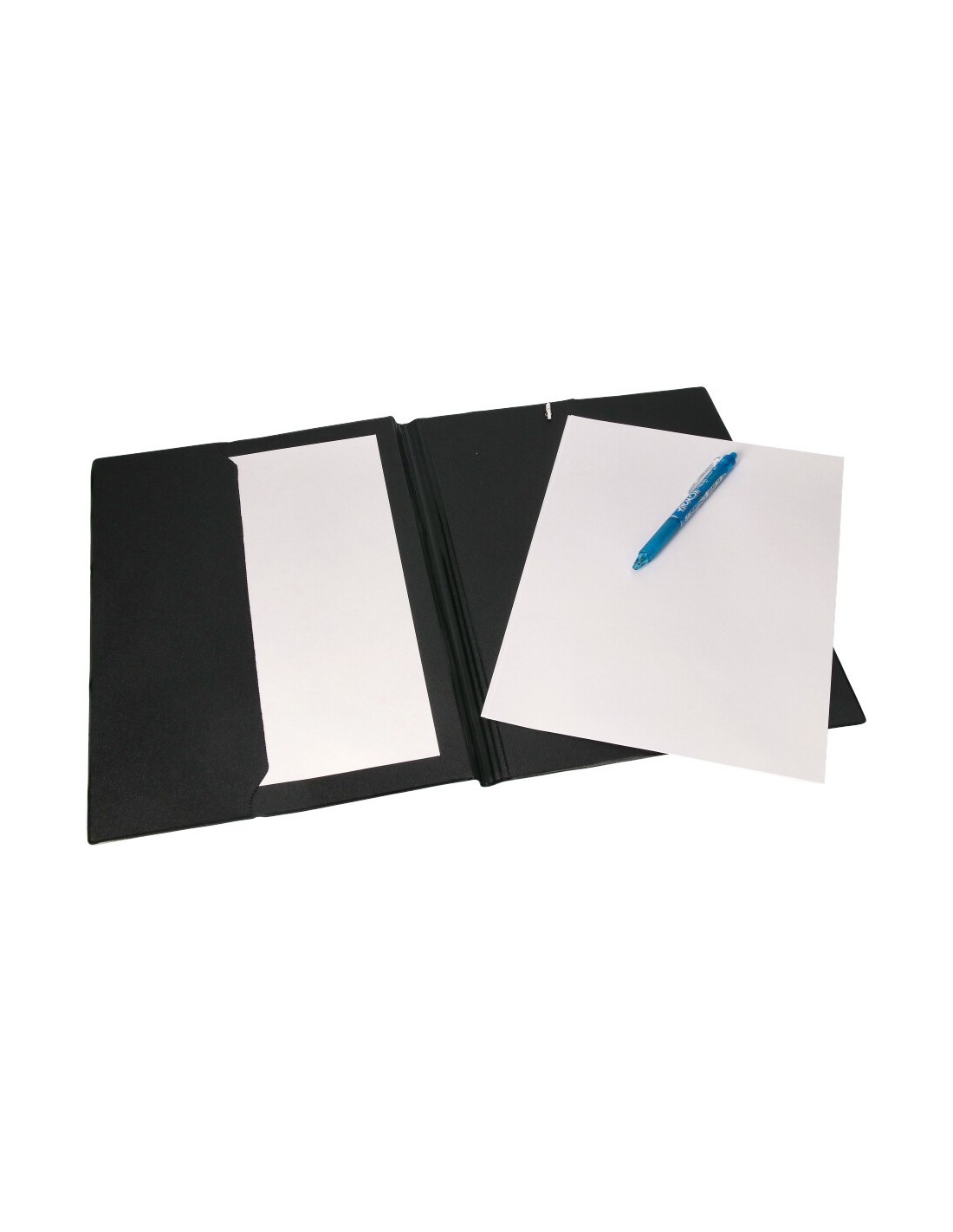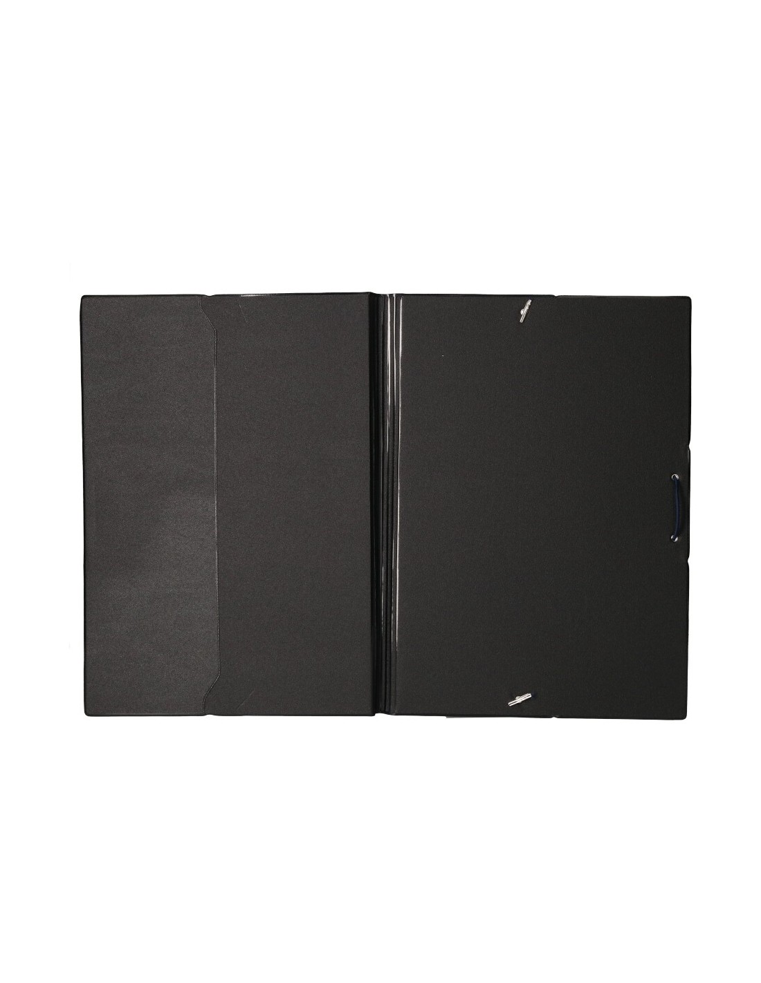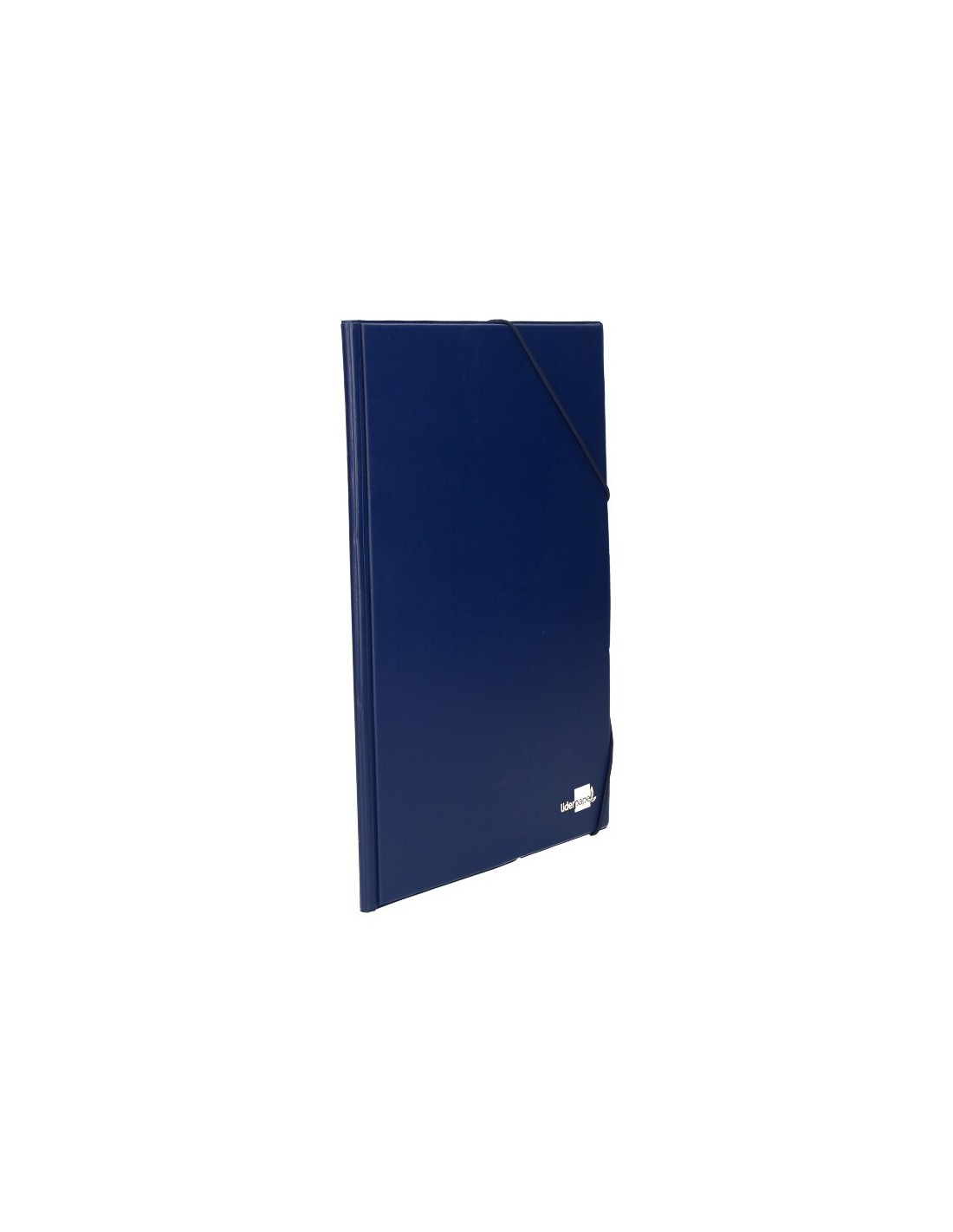 Carpeta fabricada en cartón forrado en PVC soldado unicolor. 3 mm de grosor. Cierre con gomas. Lomo flexible. Tamaño folio. Medidas: 240 x 235 mm.