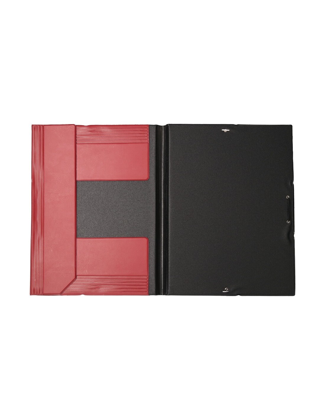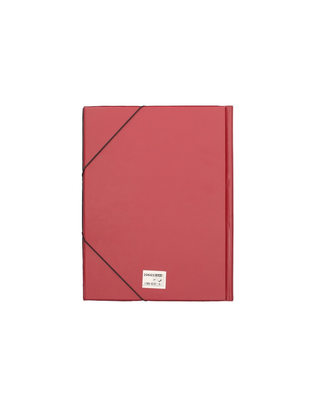 Carpeta fabricada en cartón forrado en PVC soldado unicolor. 3 mm de grosor. Cierre con gomas. Lomo flexible. Tamaño folio. Medidas: 240 x 335 mm.