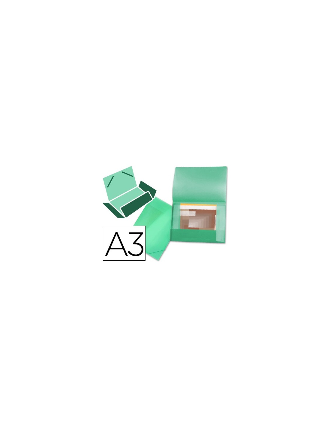 Fabricada en polipropileno. Cierre por gomas. Lomos flexibles. Colores translúcidos. Capacidad 100 hojas. 400 micras. Formato DIN A3.